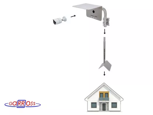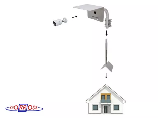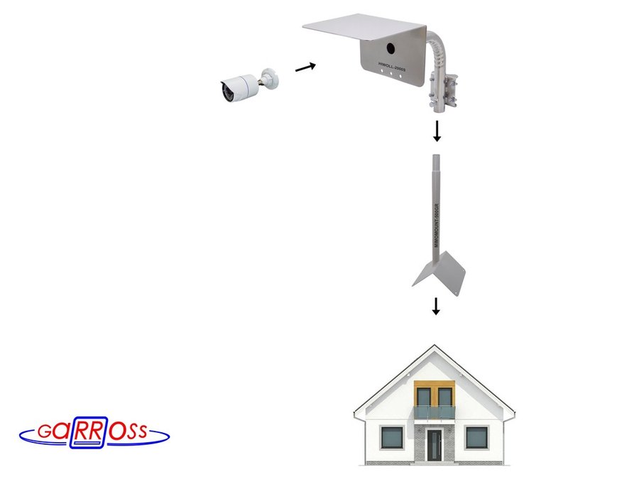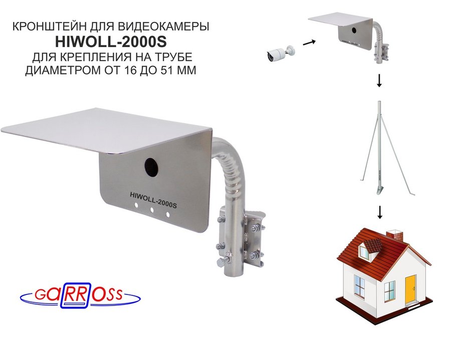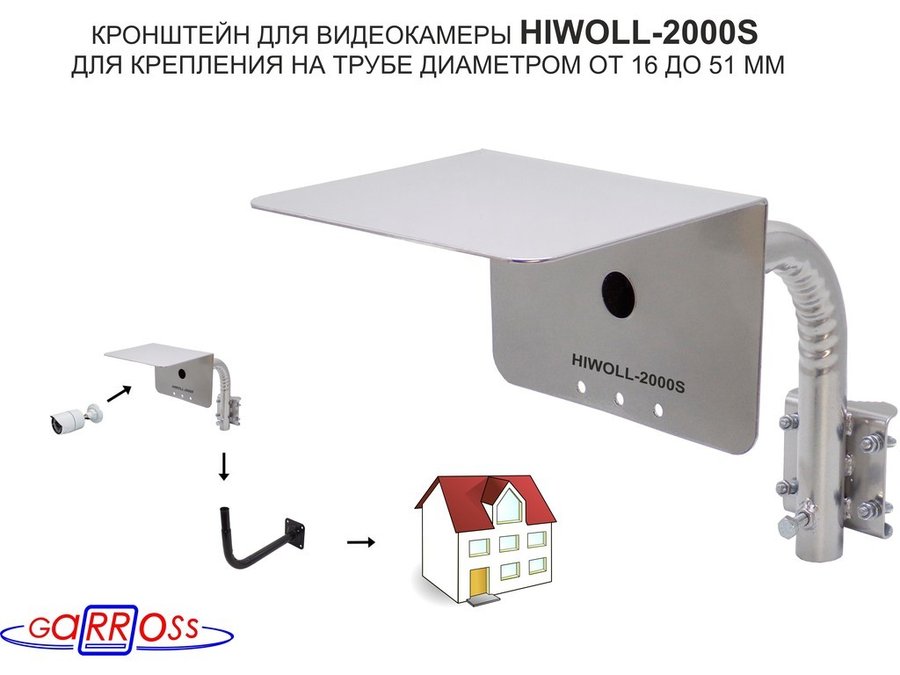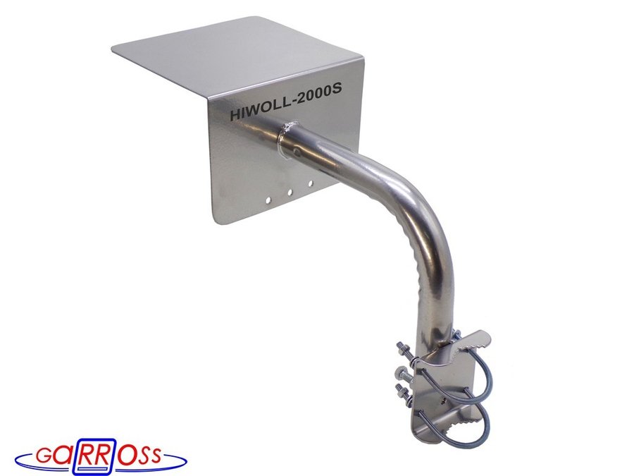 Кронштейн "HIWOLL-2000S-201358" серебристый с хомутами и козырьком на мачту для камеры и прожектора