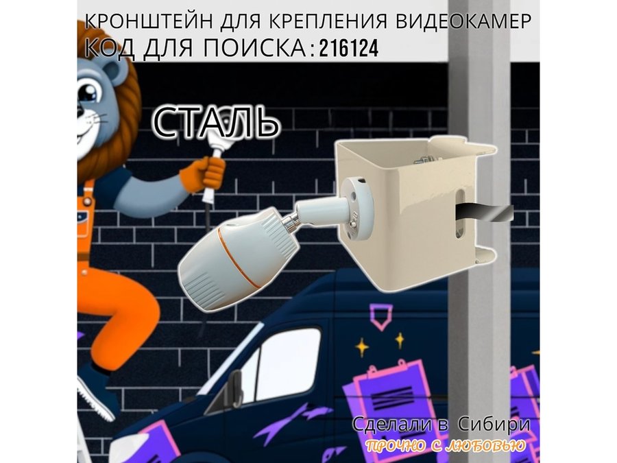 • Универсальный  усиленный кронштейн предназначен для крепления видеокамеры на трубе диаметром от 15 до 51мм или на столбе.