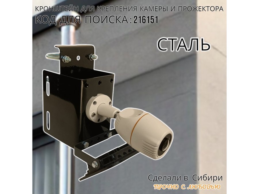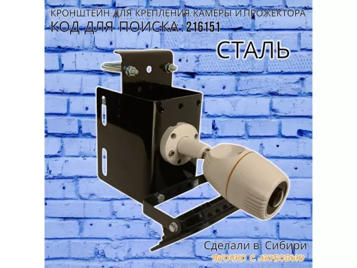 - Универсальный усиленный кронштейн предназначен для крепления прожектора или камеры на трубе диаметром от 15 до 51мм или на столбе.