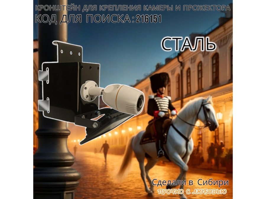 - Кронштейн позволяет быстро зафиксировать прожектор или камеру наблюдения на столб или трубу.