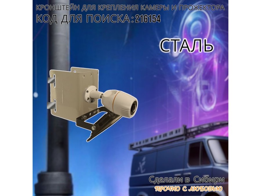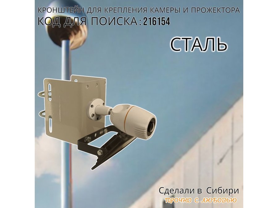 - Кронштейн позволяет быстро зафиксировать прожектор или камеру наблюдения на столб или трубу.