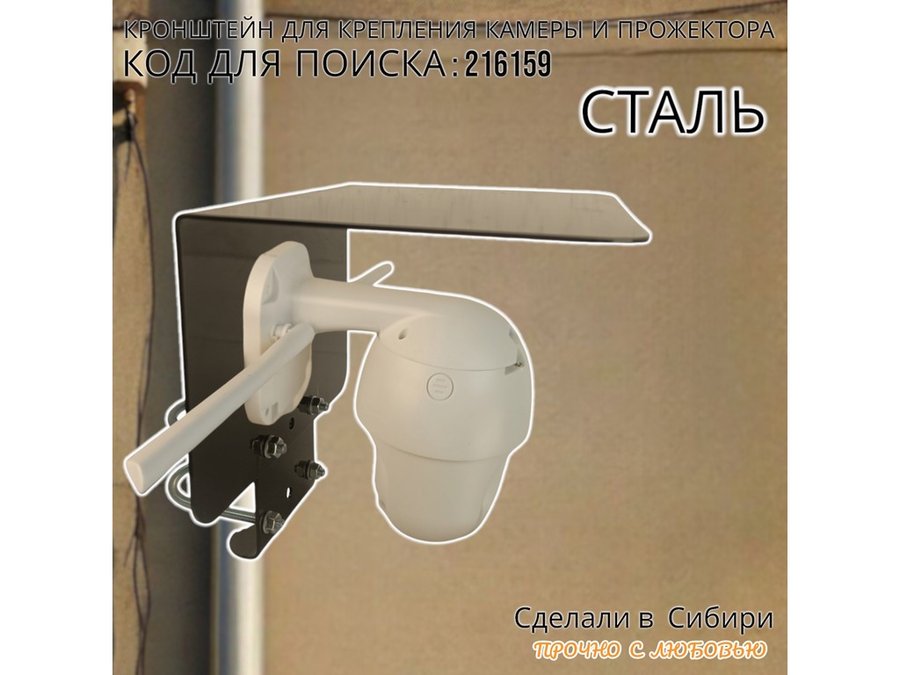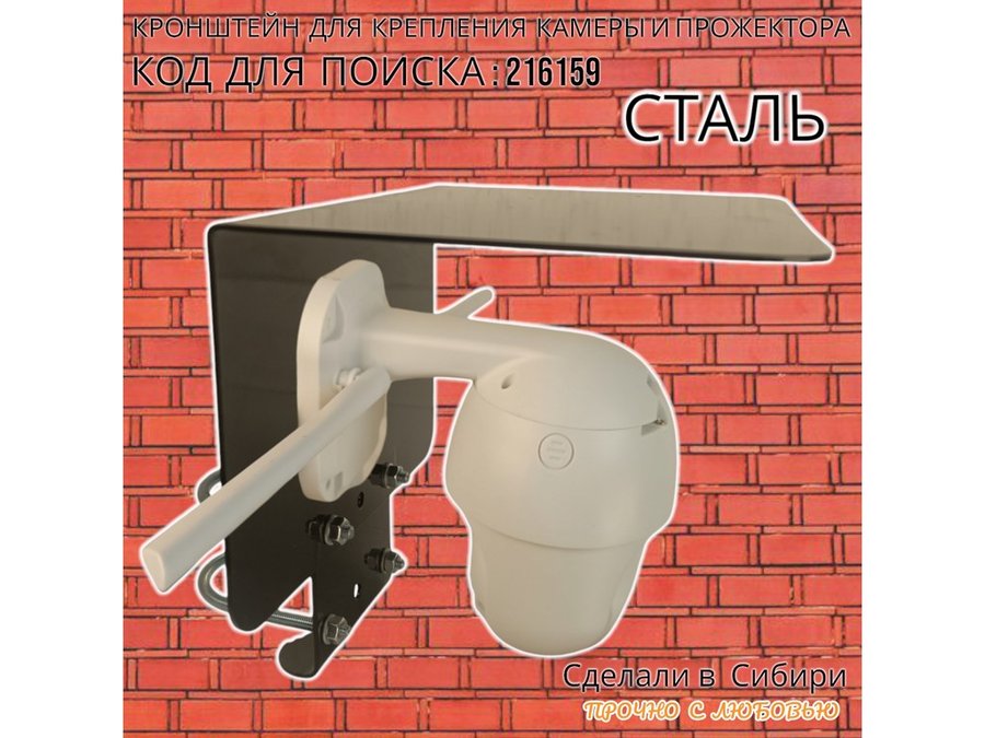 Кронштейн с козырьком на трубу для камеры и прожектора "ПРОЖЕКРЕП-216159" сталь, два хомута, черный