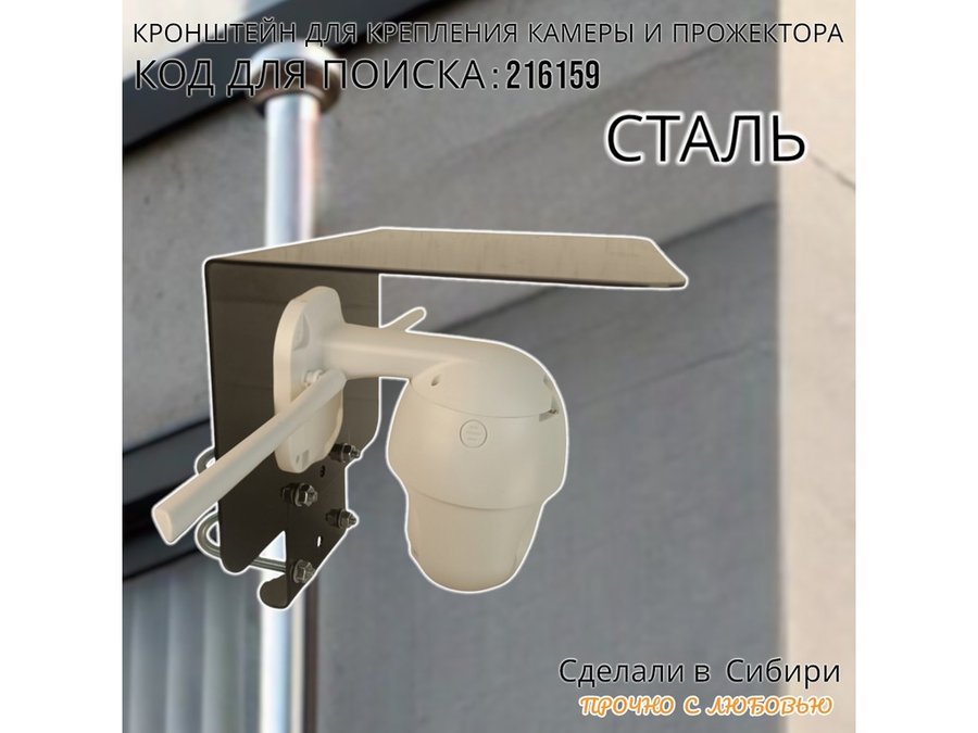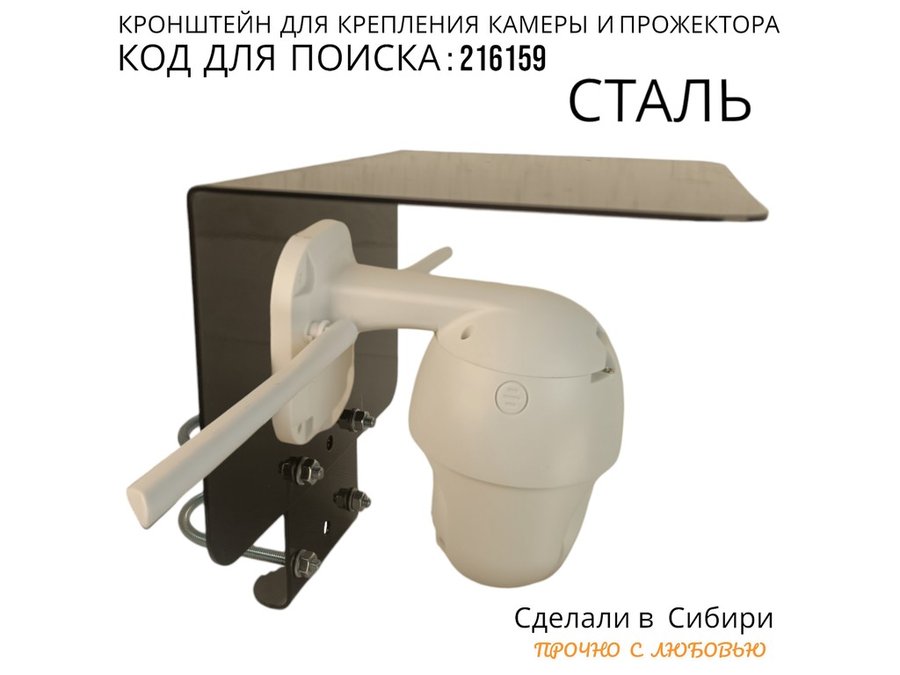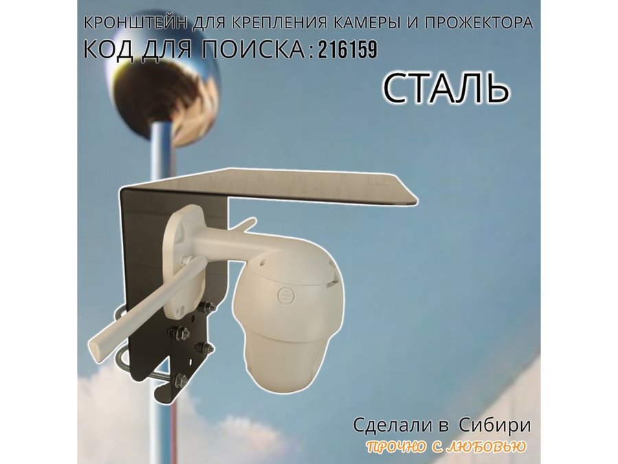 В корзину Купить в 1 клик Кронштейн с козырьком на трубу для камеры и прожектора "ПРОЖЕКРЕП-216159" сталь, два хомута, черный