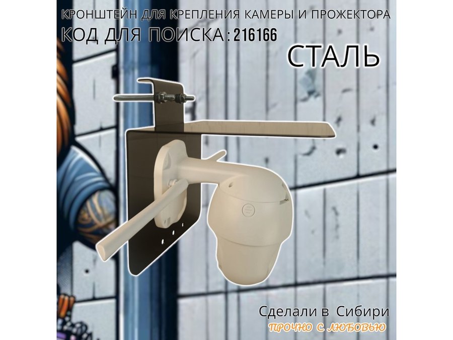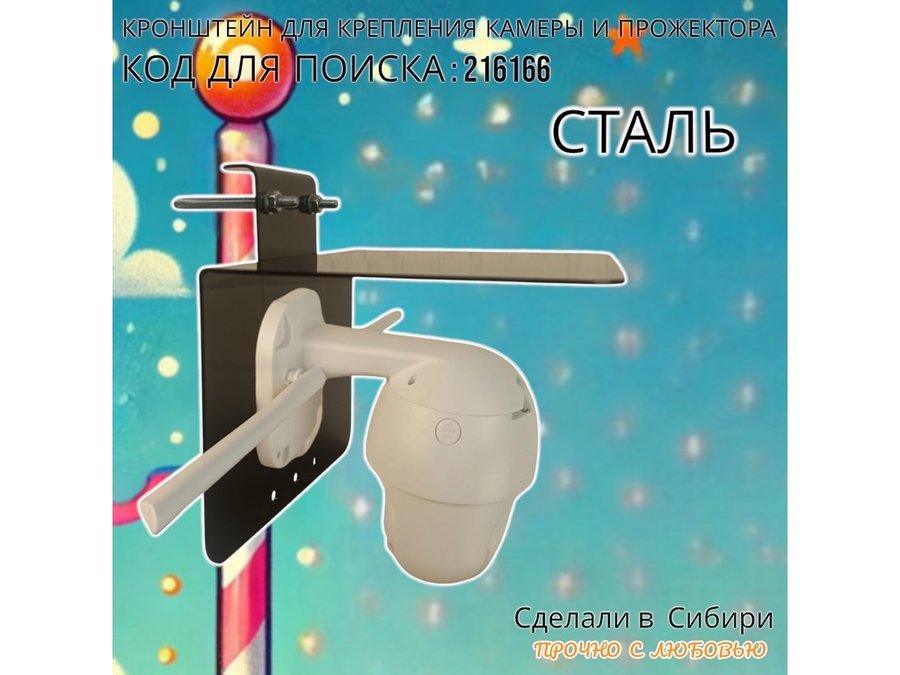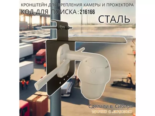 В корзину Купить в 1 клик Кронштейн с козырьком для камеры и прожектора на трубу до 51мм "ПРОЖЕКРЕП-216166" сталь, черный