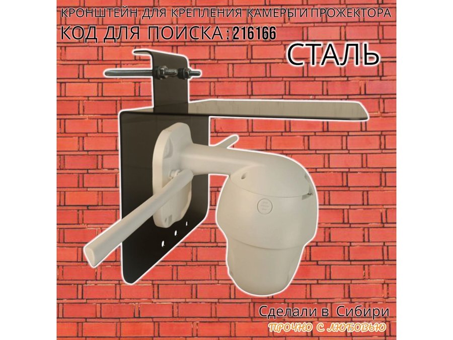Кронштейн с козырьком для камеры и прожектора на трубу до 51мм "ПРОЖЕКРЕП-216166" сталь, черный