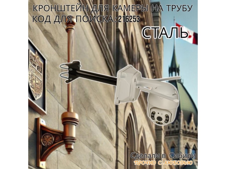 • Кронштейн предназначен для крепления поворотной или цилиндрической камеры на трубу.