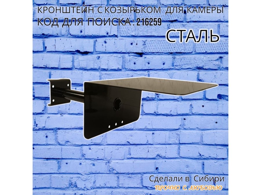 - Универсальный кронштейн с козырьком предназначен для крепления поворотной или цилиндрической камеры и прожектора на трубу.