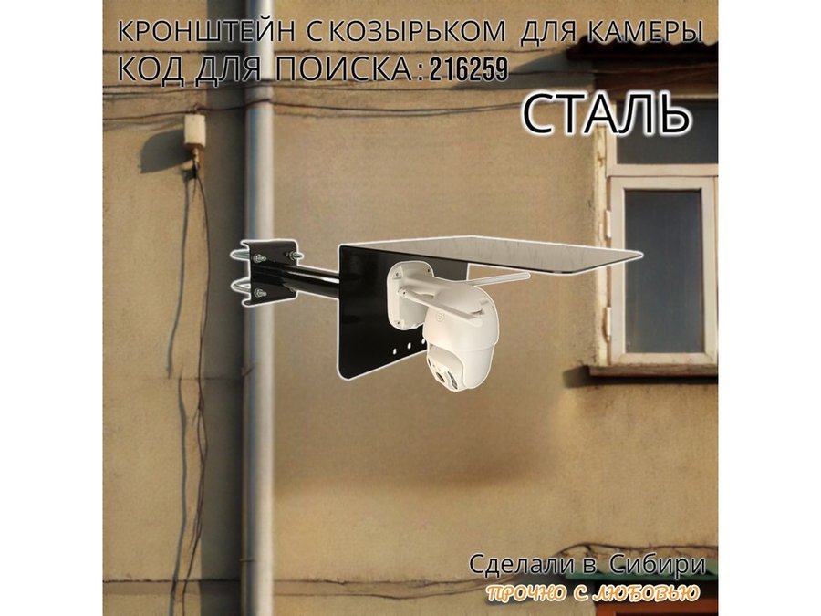 Кронштейн с козырьком для видеокамеры на трубу 15...51мм вылет 25см "HIWOLL-216259" чёрный