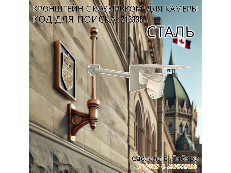 Кронштейн с козырьком для видеокамеры на трубу 15...51мм вылет 50см 24х22см "HIWOLL-216335" серый