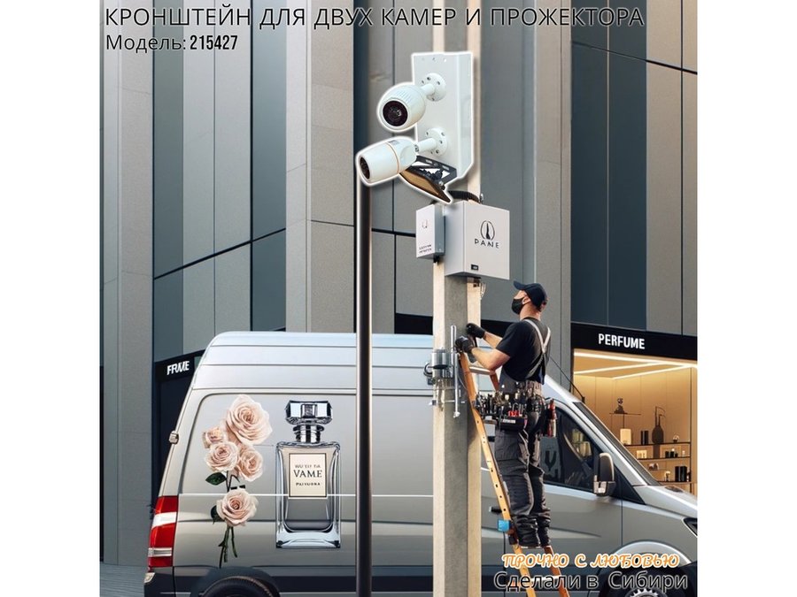 В корзину Купить в 1 клик Набор 2шт. Кронштейн для двух камер и прожектора на столб белый "IPAHD-201W-215427" под СИП-ленту