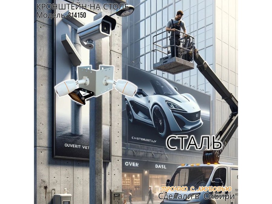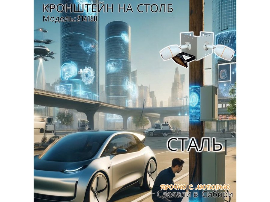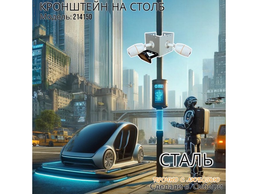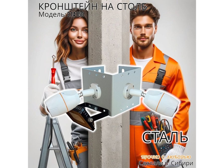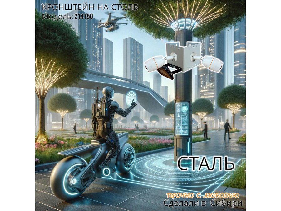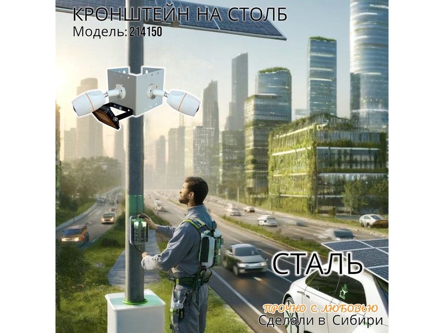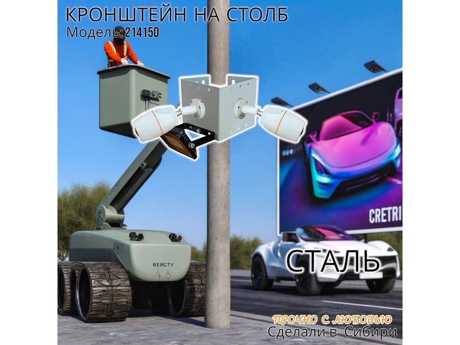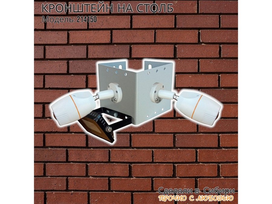 • Кронштейн для двух камер и прожектора, крепится при помощи СИП ленты монтажной на квадратный или круглый столб.
