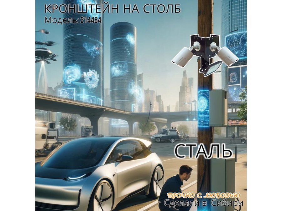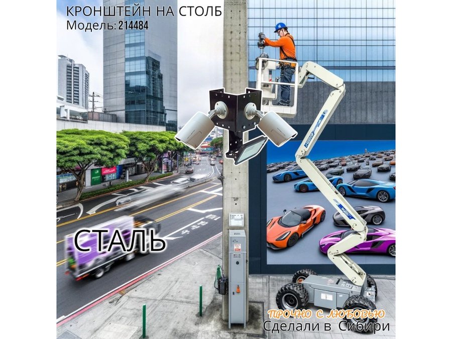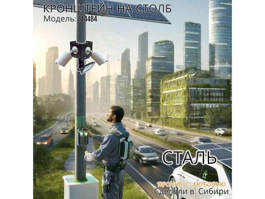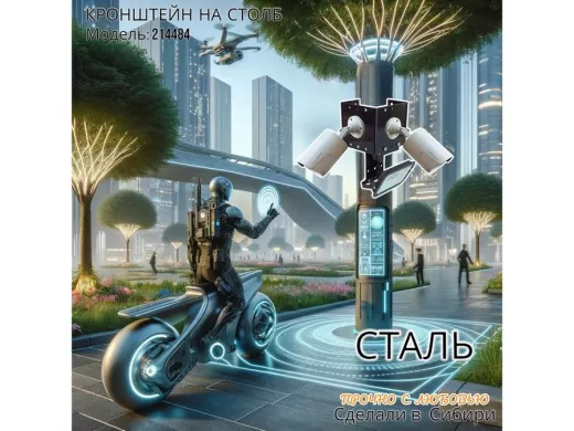 - Кронштейн позволяет быстро зафиксировать камеры видеонаблюдения или прожектор на столбе, не сверля его.