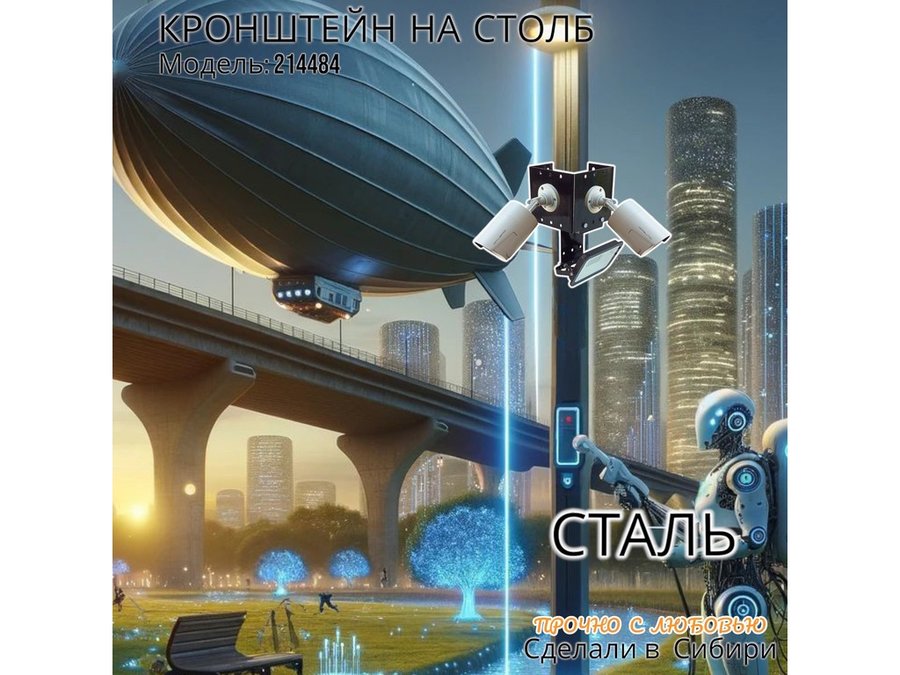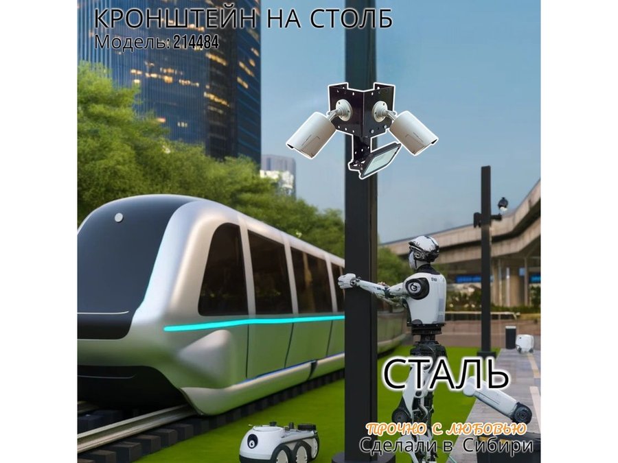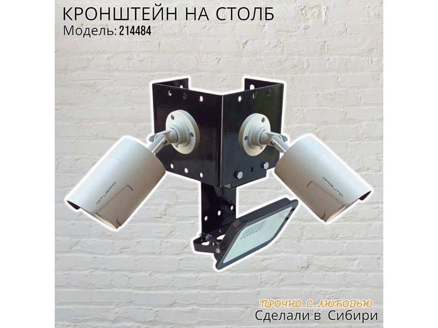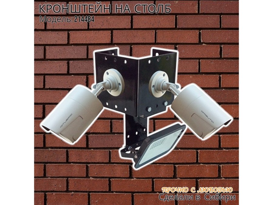- Кронштейн для двух камер и прожектора, крепится при помощи СИП ленты монтажной на квадратный или круглый столб.