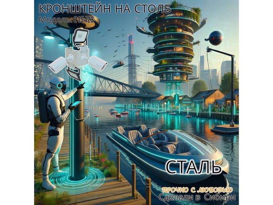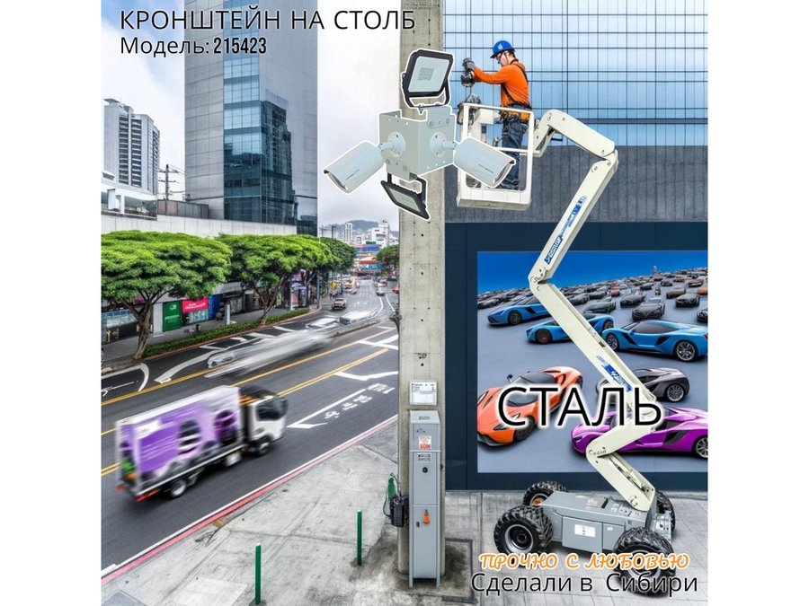 • Кронштейн для двух камер и прожектора, крепится при помощи СИП ленты монтажной на квадратный или круглый столб.