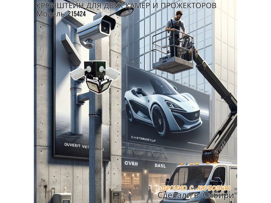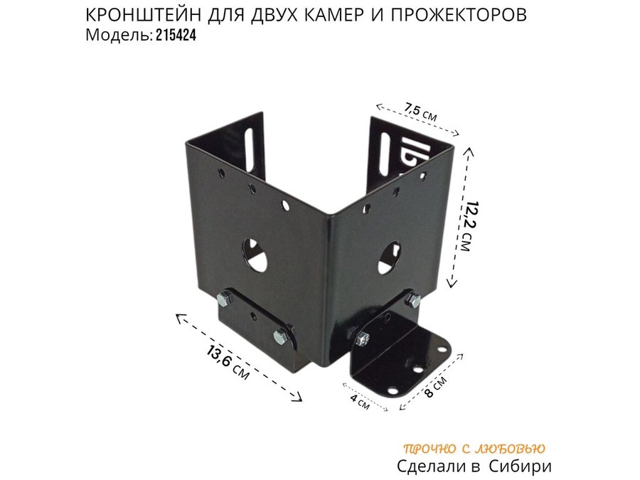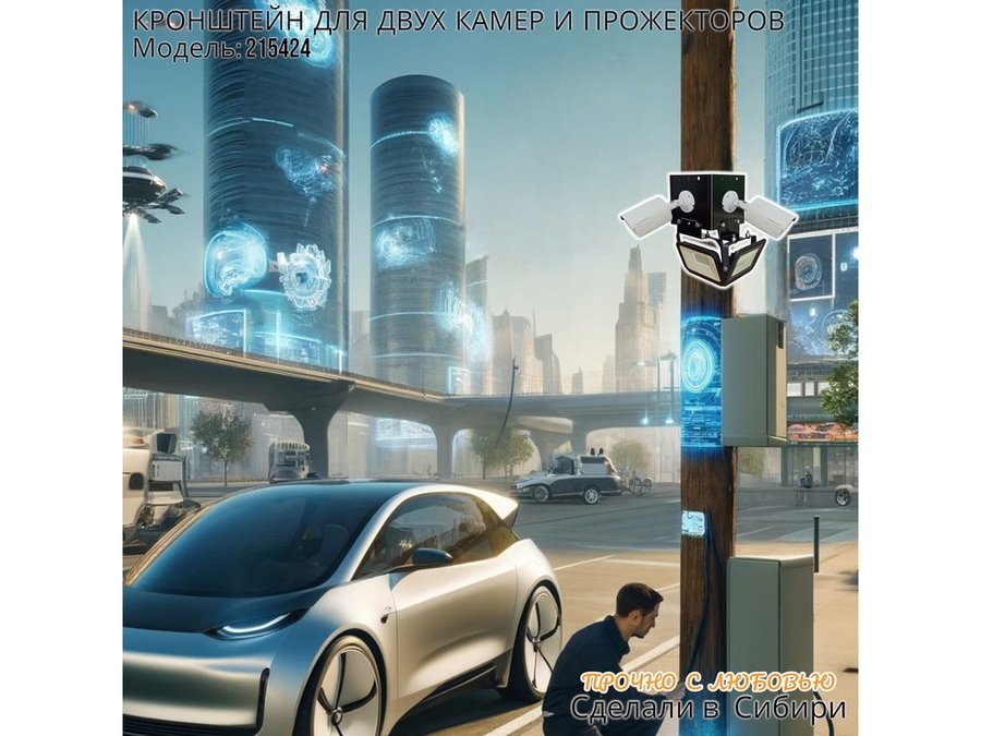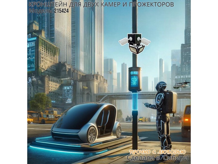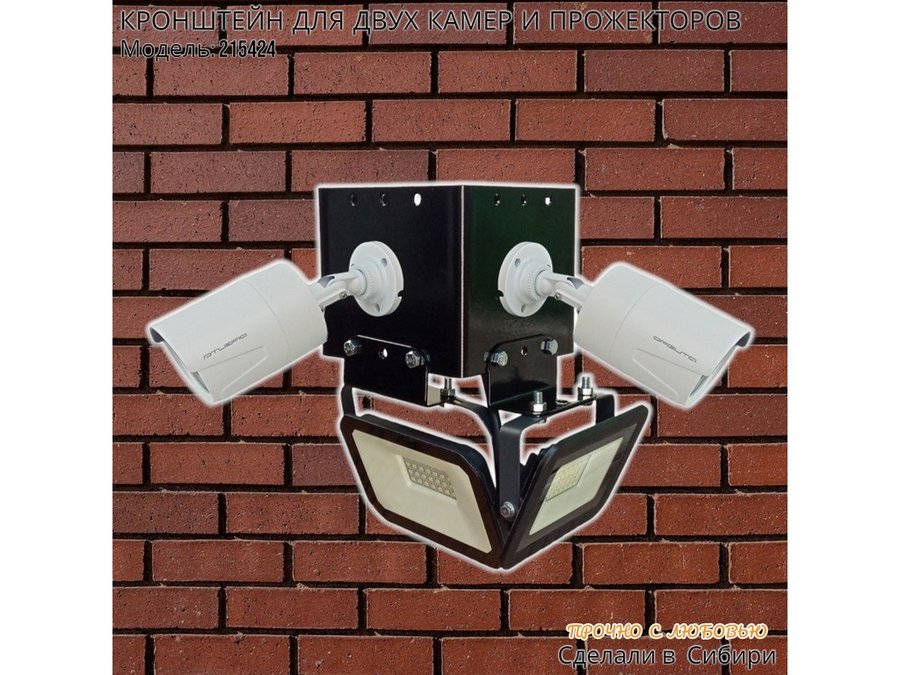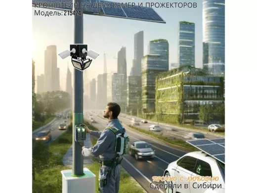 • Кронштейн для двух камер и прожектора, крепится при помощи СИП ленты монтажной на квадратный или круглый столб.