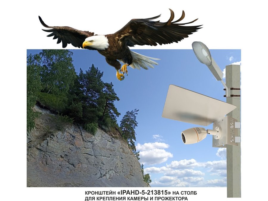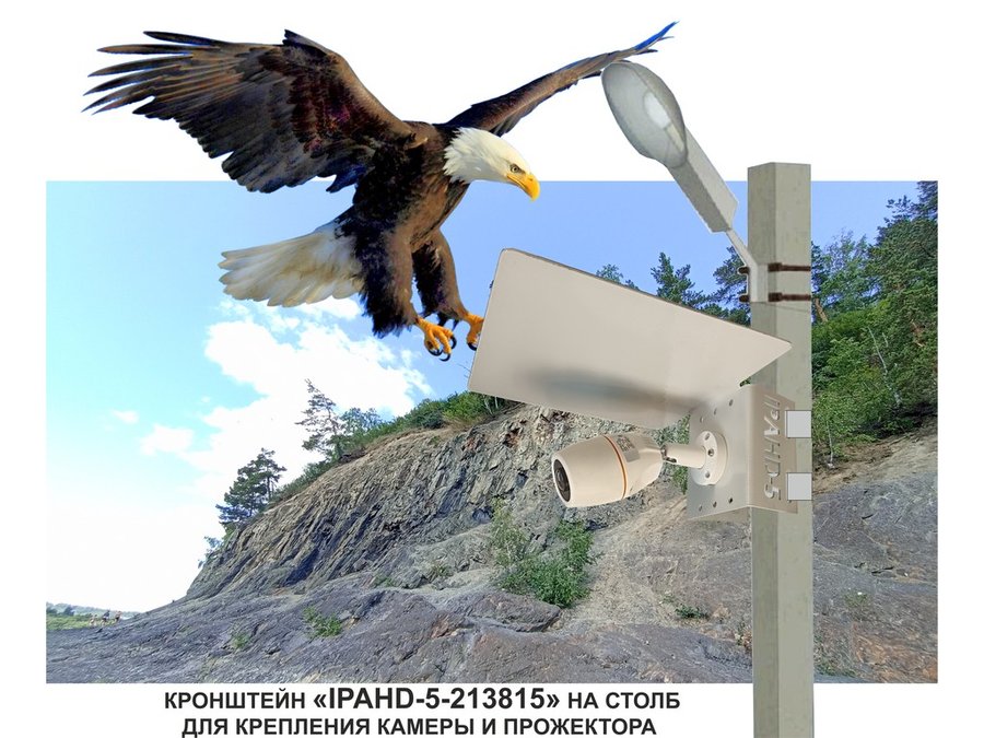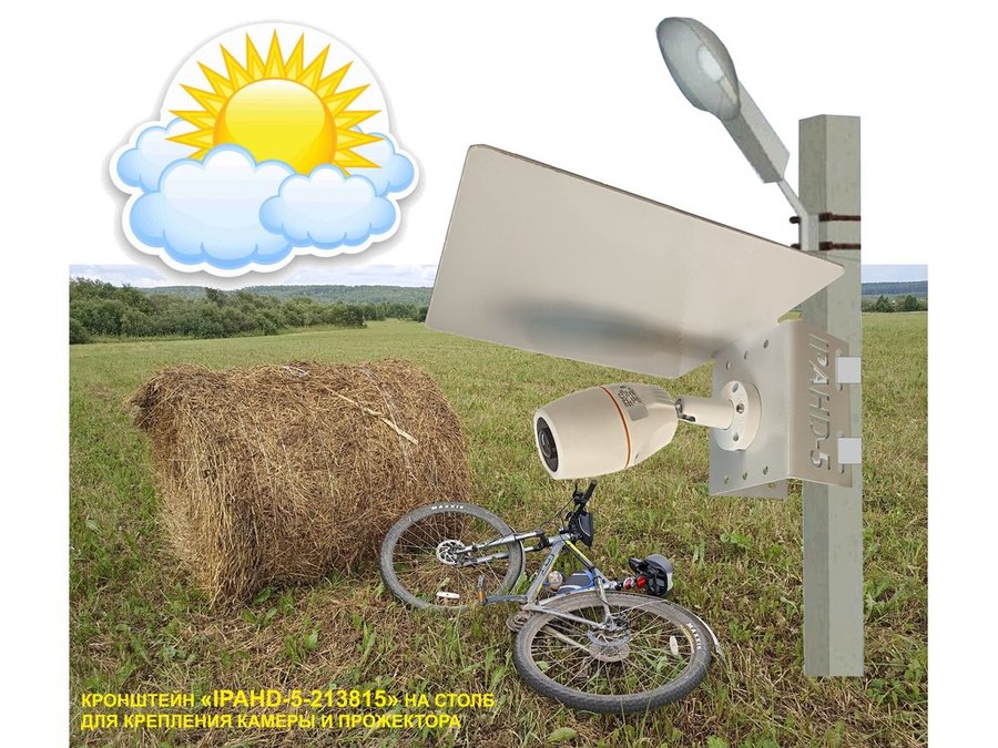 Кронштейн с козырьком "IPAHD-5-213815" для камеры и прожектора на столб под СИП- ленту