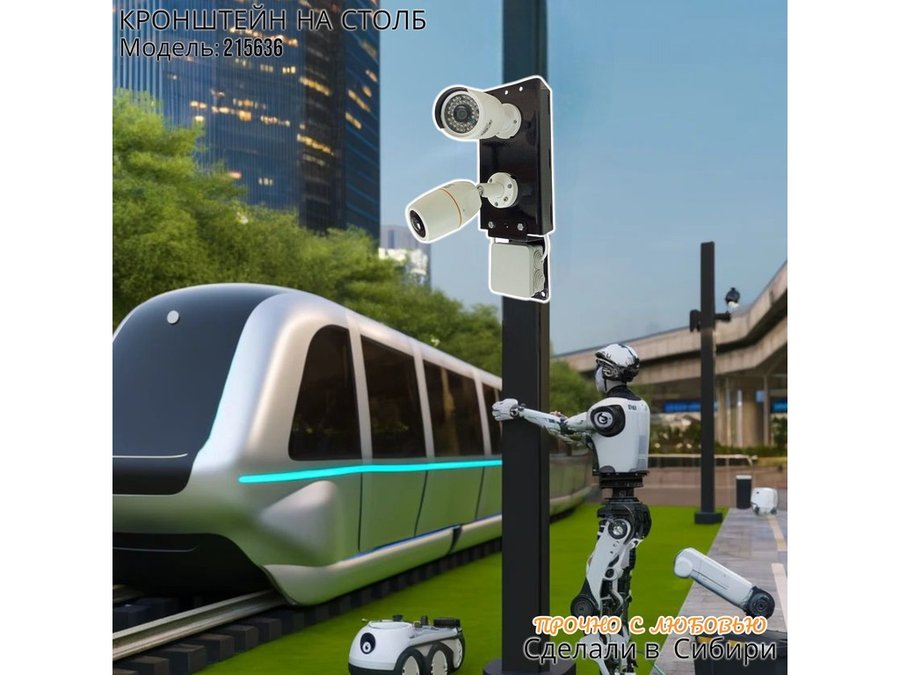 В корзину Купить в 1 клик Кронштейн для двух камер и прожектора на столб с пластиной для гермокоробки черный IPAHD-5-215636