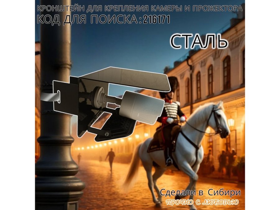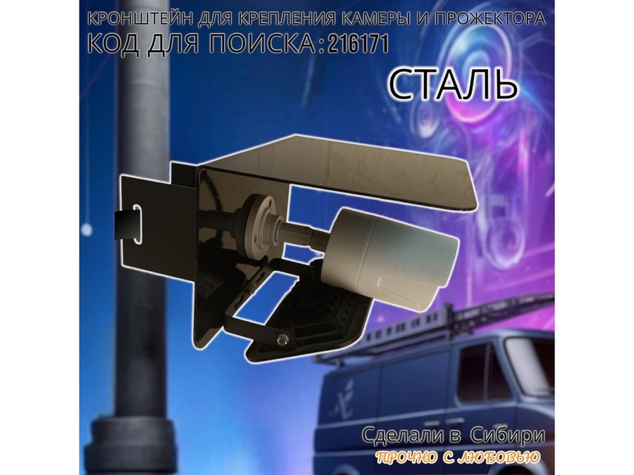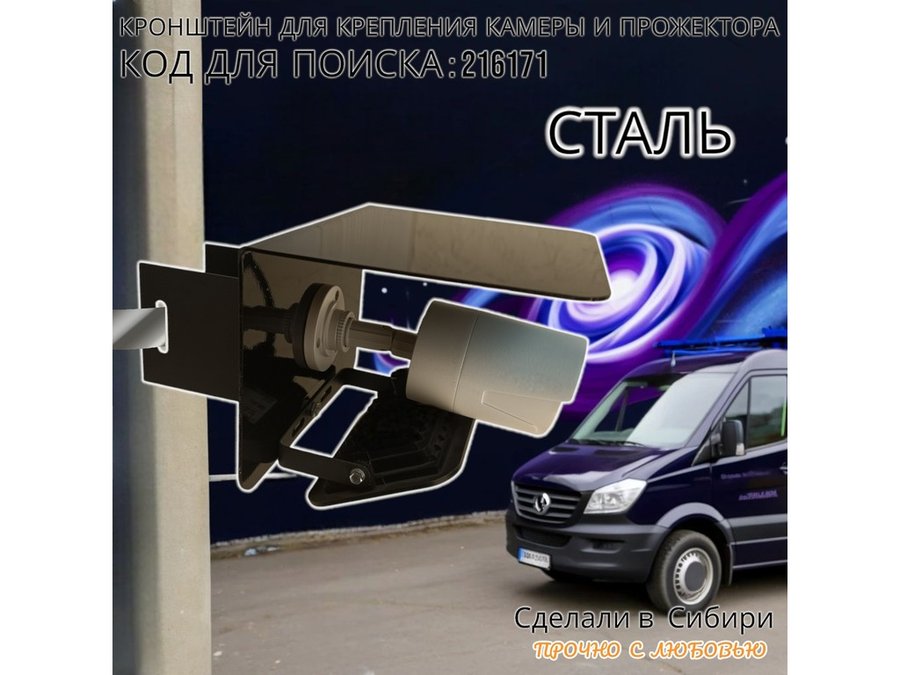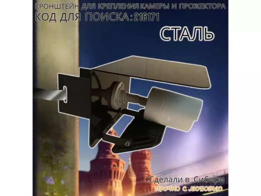 • Универсальный кронштейн с козырьком предназначен для крепления прожектора или камеры на столб.