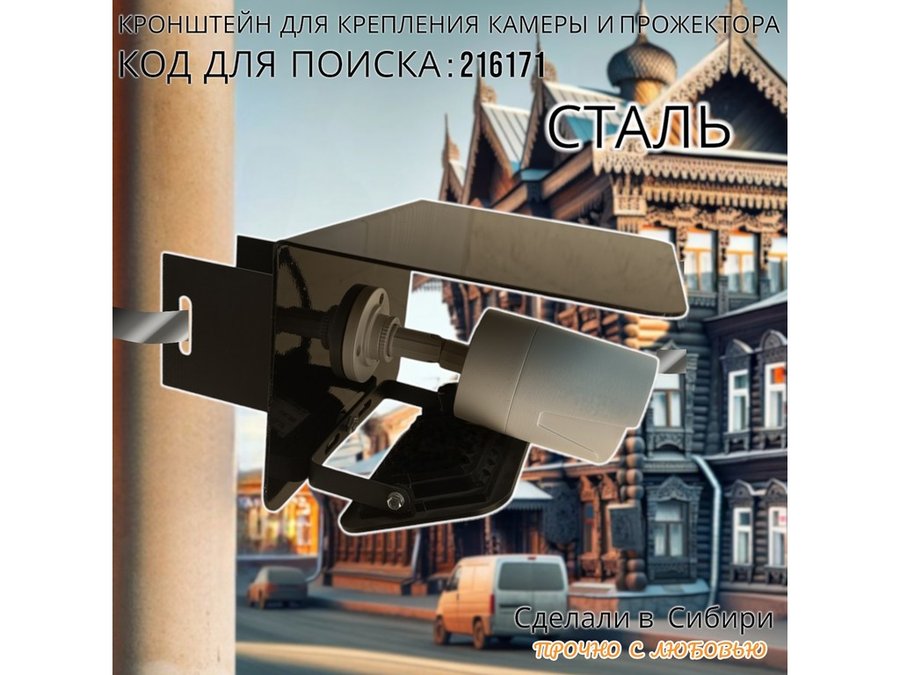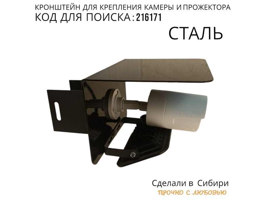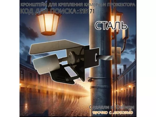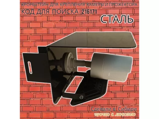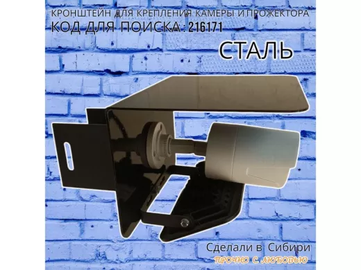 Кронштейн для камеры и прожектора на столб с козырьком "IPAHD-216171" черный,под СИП-ленту или хомут