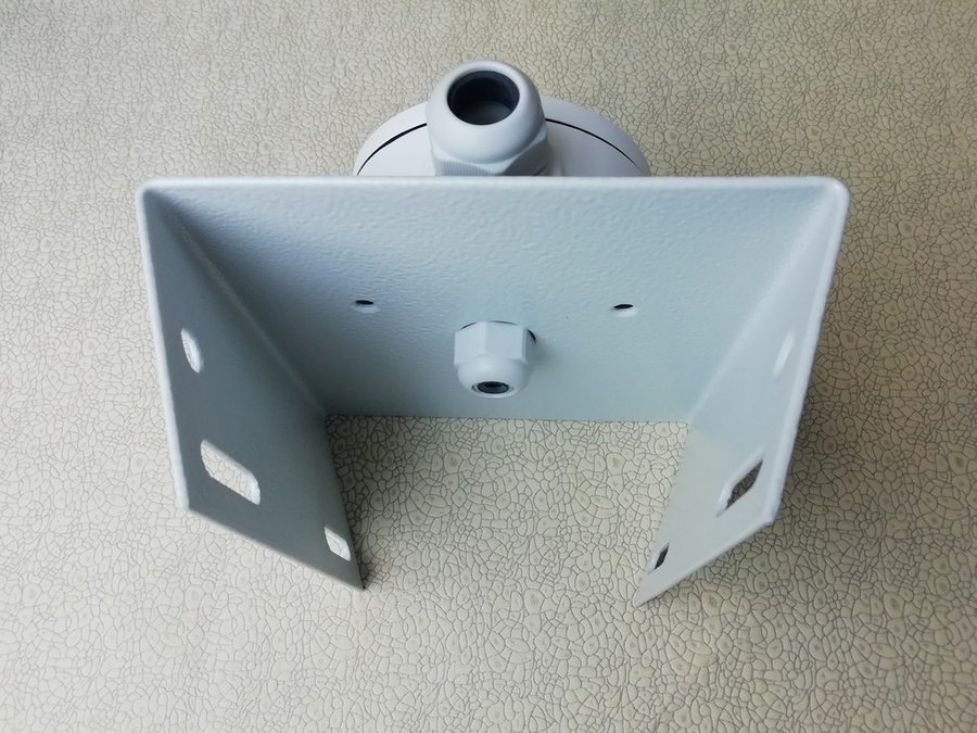 - У кронштейна есть три отверстия для крепления гермобокса, в котором можно расположить соединительные разъемы от камеры.