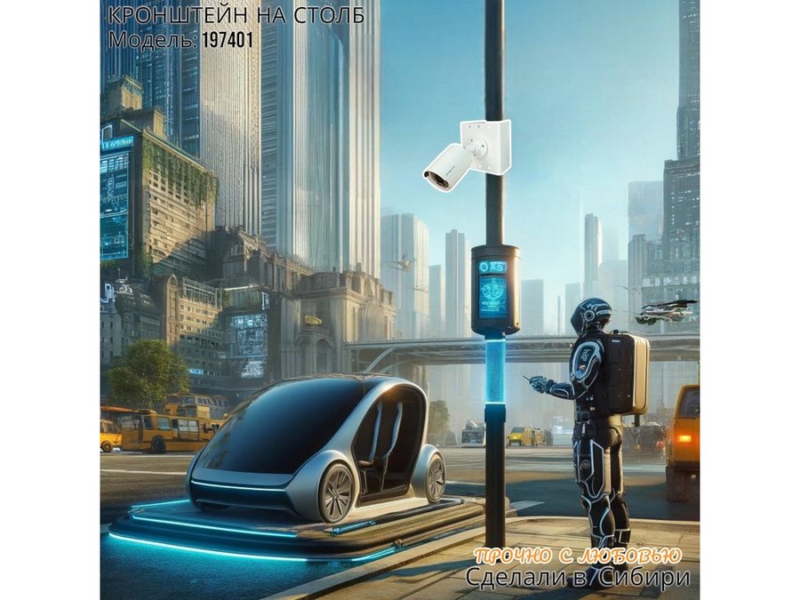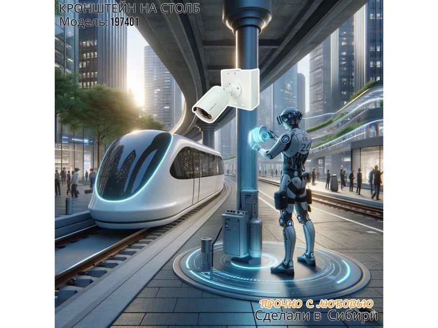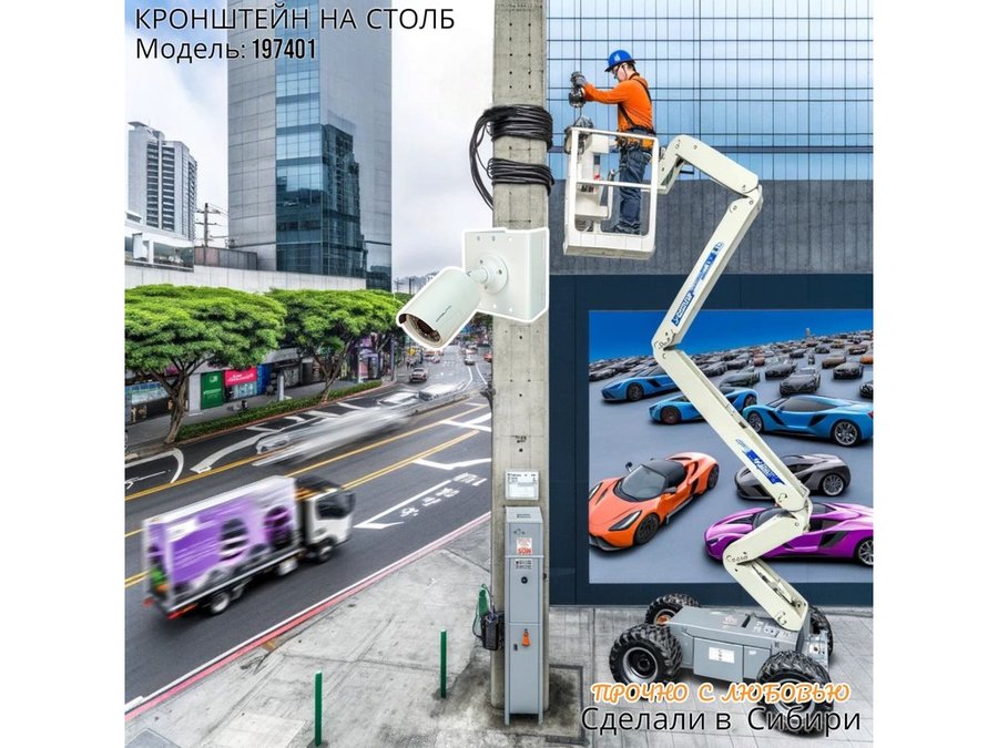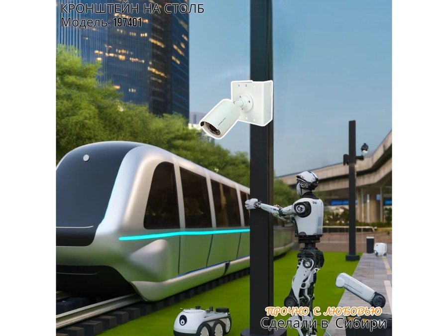 • Кронштейн для одной камеры и прожектора, крепится при помощи СИП ленты монтажной на квадратный или круглый столб. Подходит для любых камер.