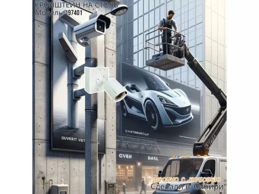 • С данным кронштейном нет необходимости в фиксации дополнительного крепежа под установку камеры и прожектора, все крепежные отверстия имеются на кронштейне.