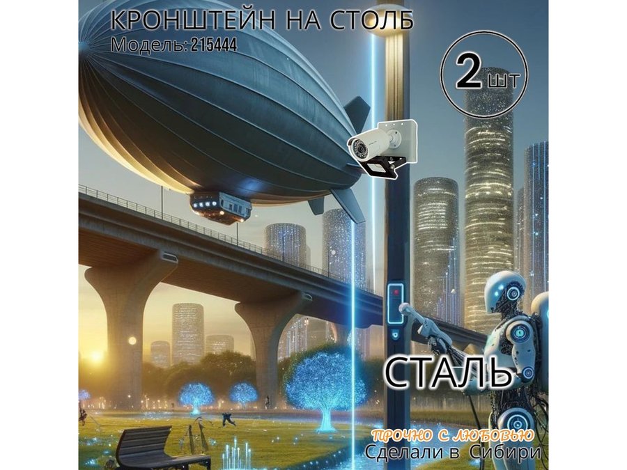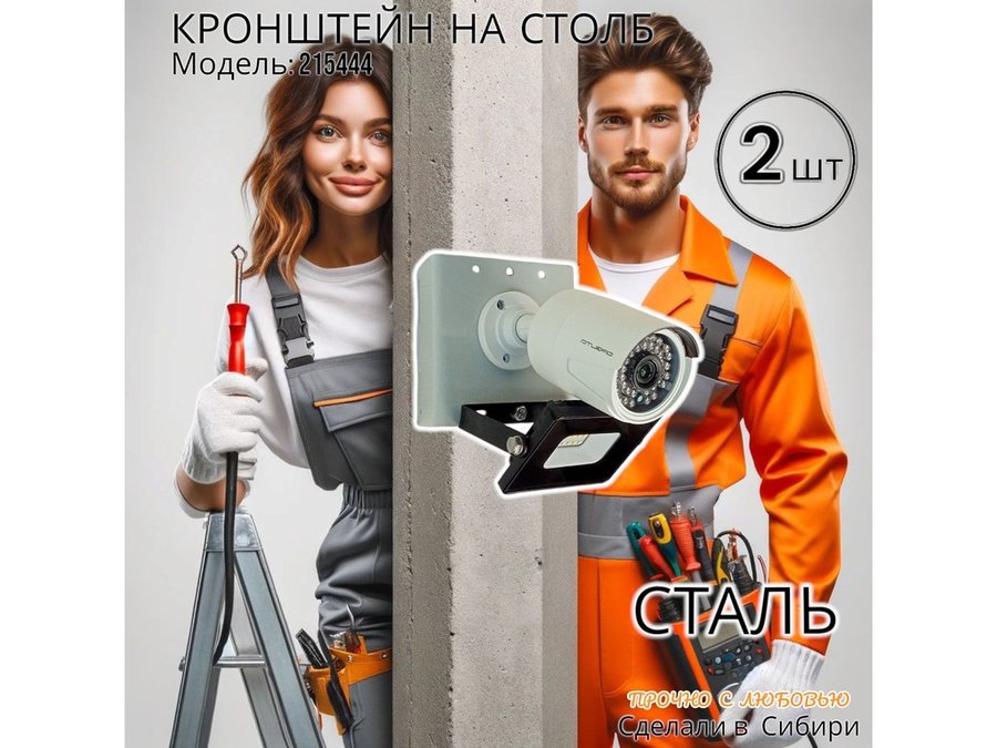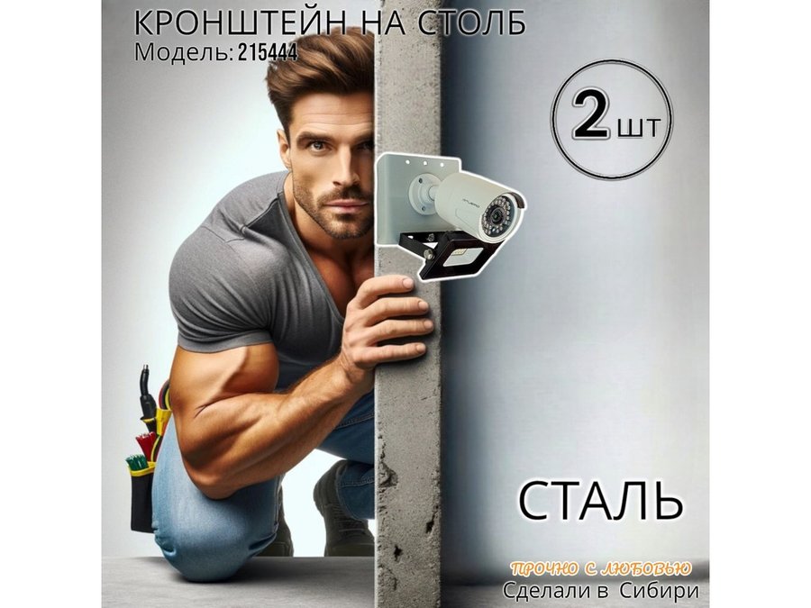 • Кронштейн для 1 камеры и прожектора, крепится при помощи СИП ленты монтажной на квадратный или круглый столб. Подходит для любых камер.