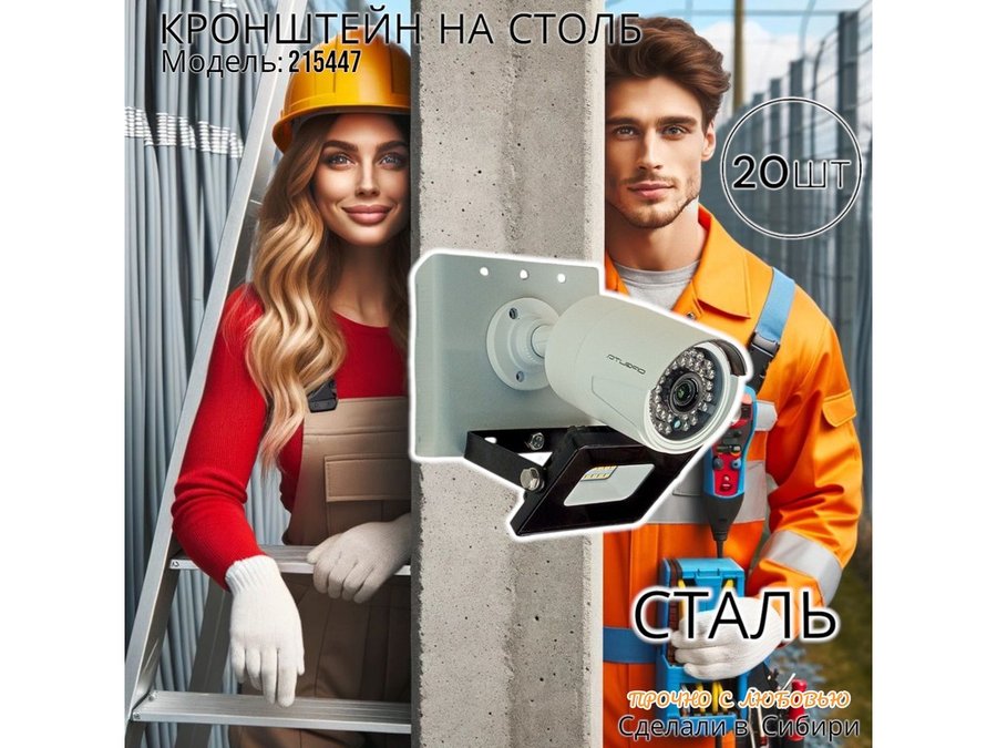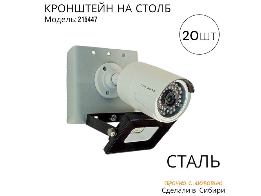- Кронштейн позволяет быстро зафиксировать камеру и прожектор на столбе, не сверля его.
