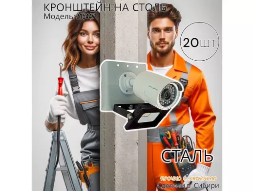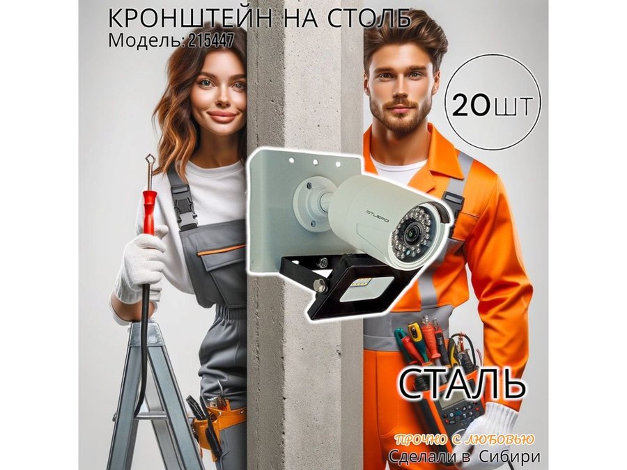 - Кронштейн для 1 камеры и прожектора, крепится при помощи СИП ленты монтажной на квадратный или круглый столб. Подходит для любых камер.