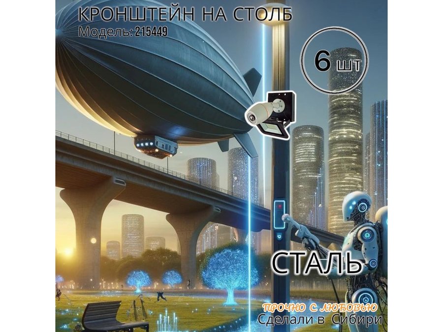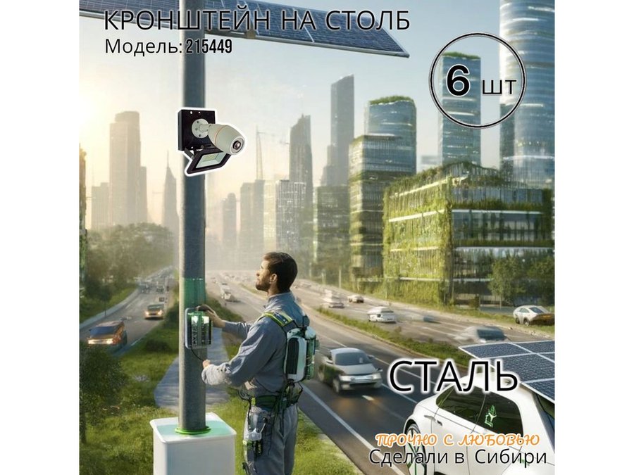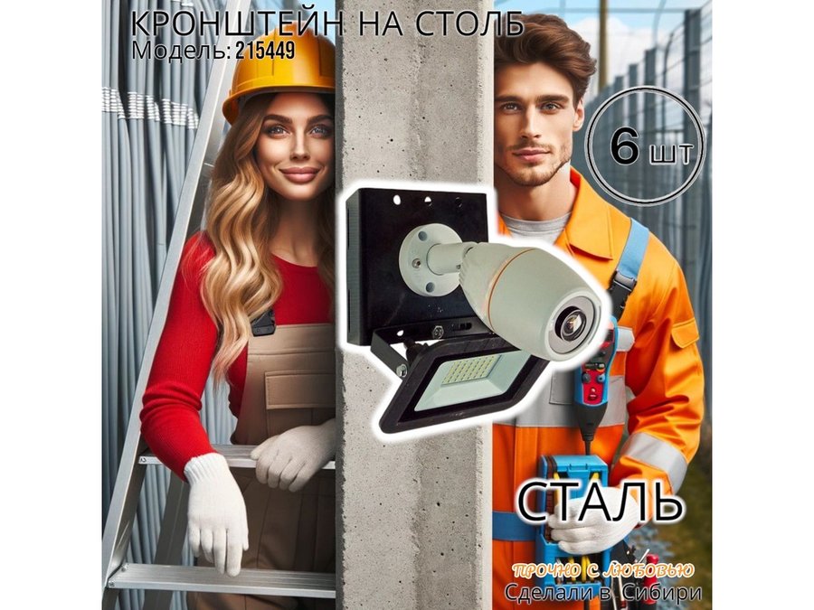 • Кронштейн для 1 камеры и прожектора, крепится при помощи СИП ленты монтажной на квадратный или круглый столб. Подходит для любых камер.