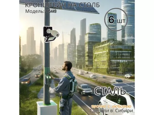 В корзину Купить в 1 клик Набор 6 шт. Кронштейн для 1 камеры и прожектора на столб черный "IPAHD-101BK-215449" под хомут