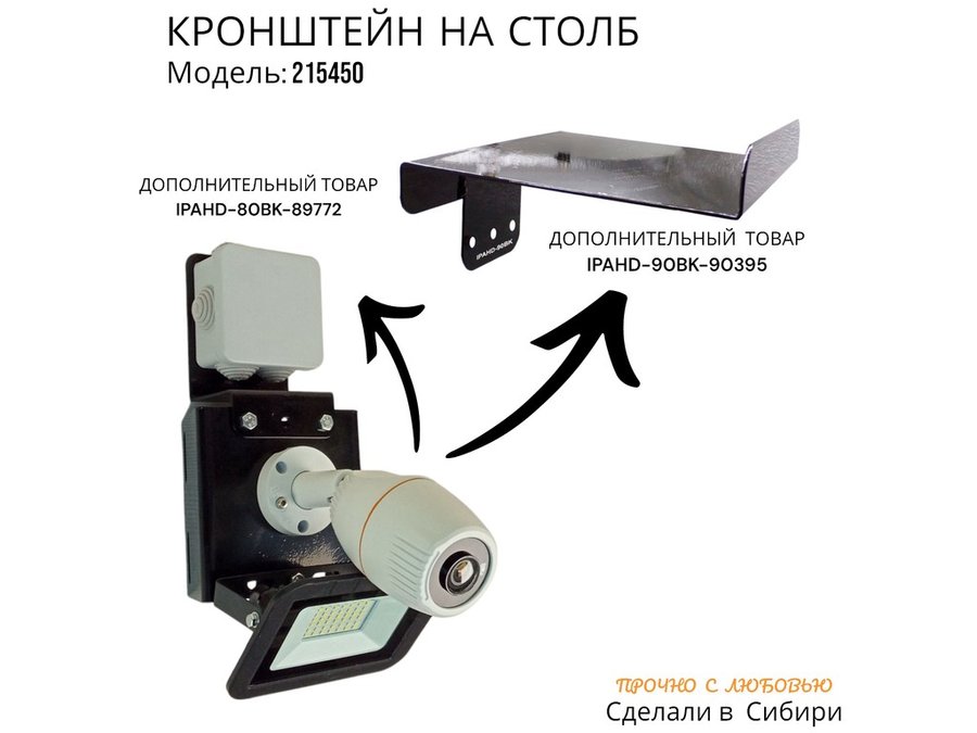 • Кронштейн позволяет быстро зафиксировать камеру и прожектор на столбе, не сверля его.