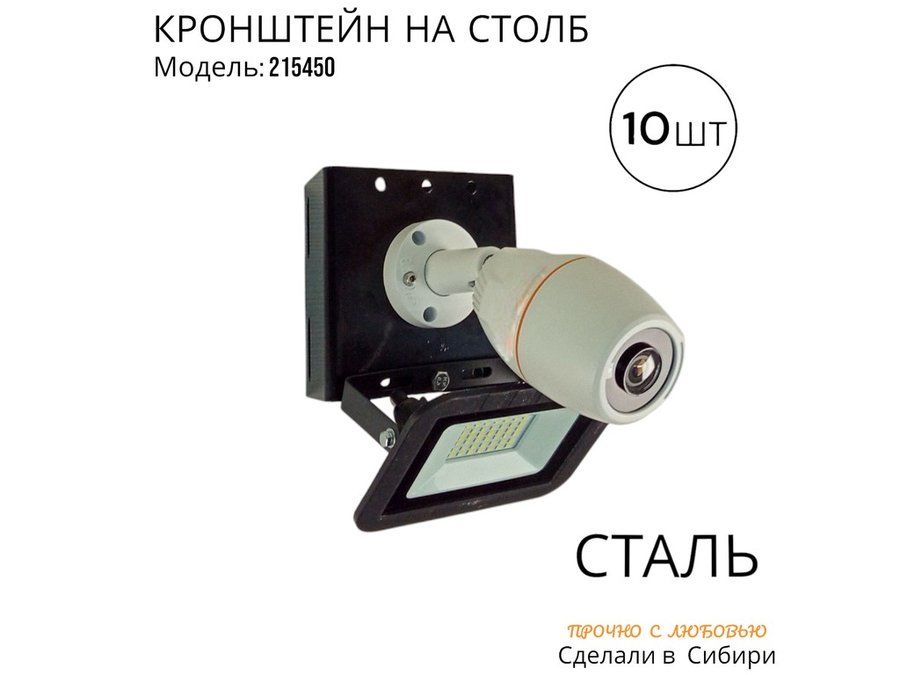 • Кронштейн для 1 камеры и прожектора, крепится при помощи СИП ленты монтажной на квадратный или круглый столб. Подходит для любых камер.