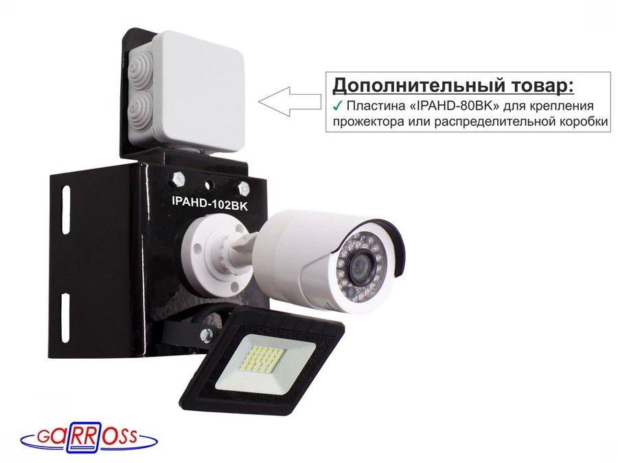 Кронштейн "IPAHD-102BK" ЧЁРНЫЙ для 1 камеры и прожектора на столб СИП-лента, вылет 80мм,150мм