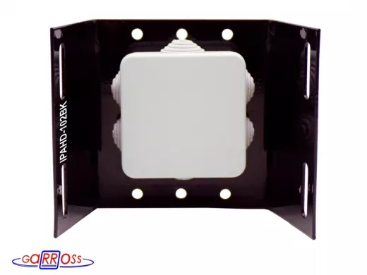 - Конструкция кронштейна позволяет крепить дополнительную опцию в виде разводной коробки, для укладки соединительных электропроводов от камеры и прожектора.