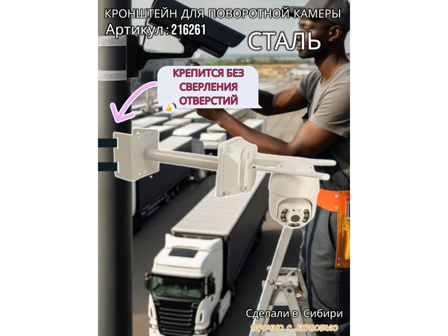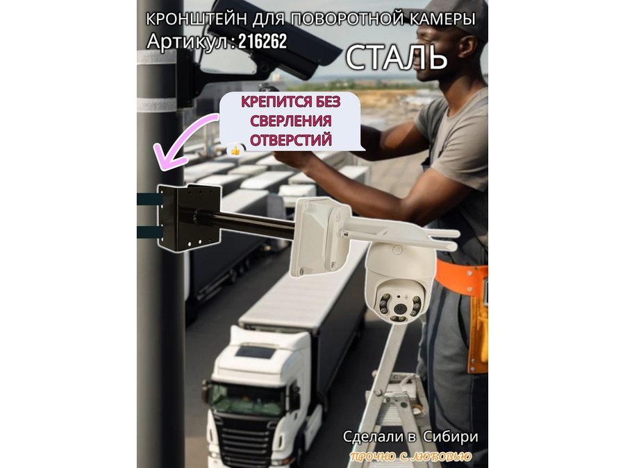 Кронштейн на столб для крепления гермобокса с видеокамерой, вылет 25 см "HIWOLL-216262" черный,сталь