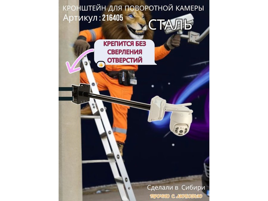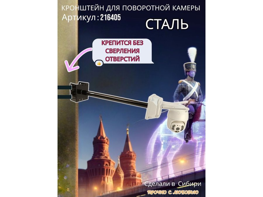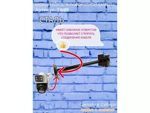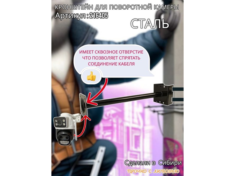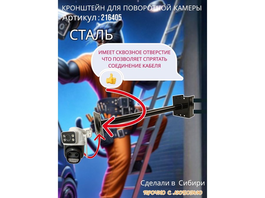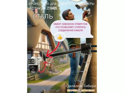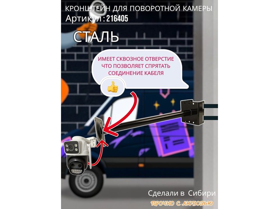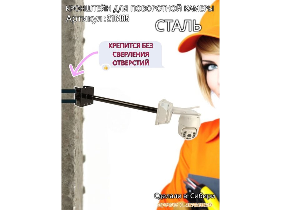 • Стальной кронштейн позволяет вынести камеру от столба на 50 см.