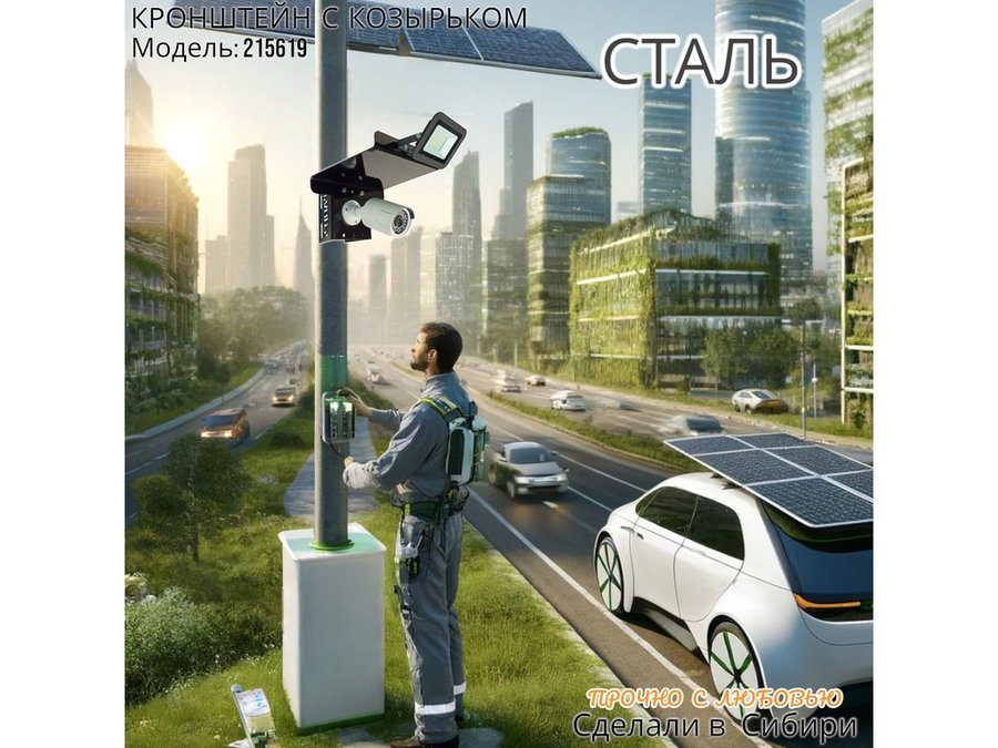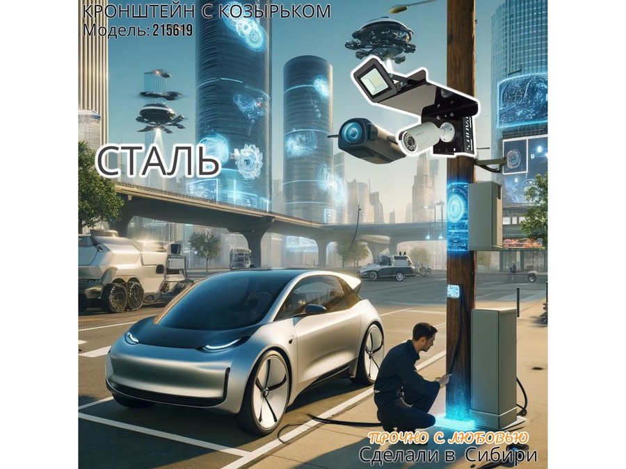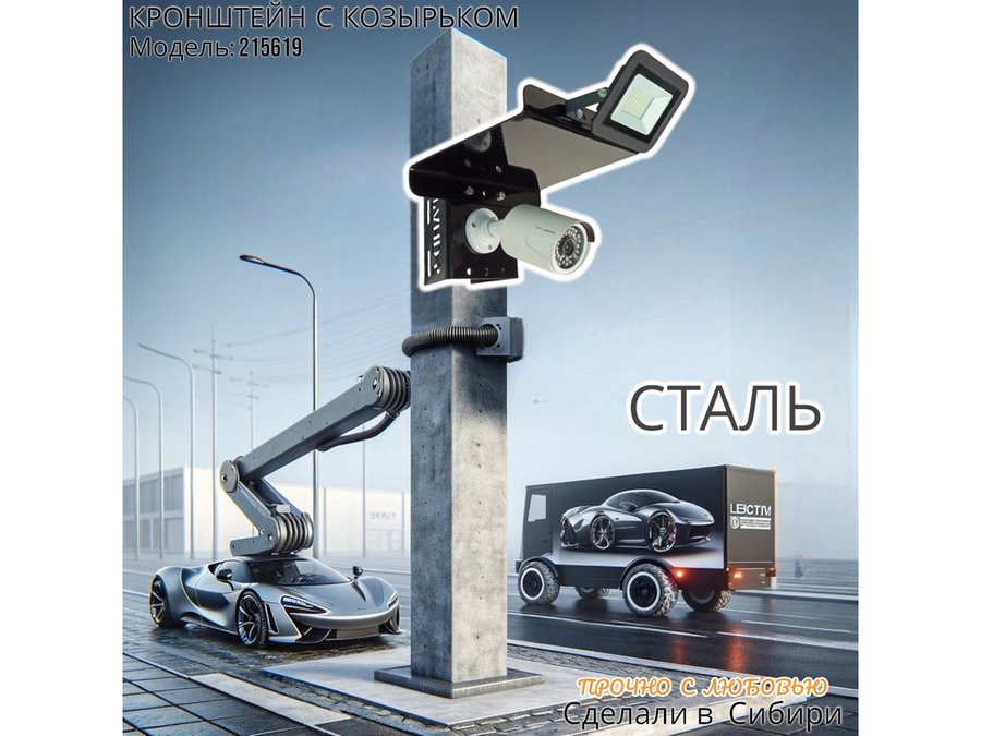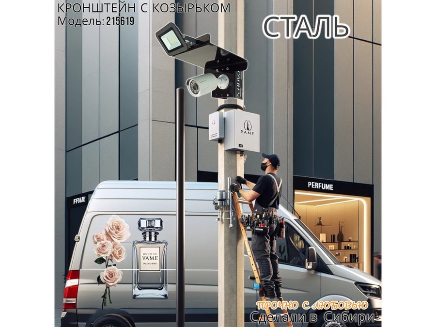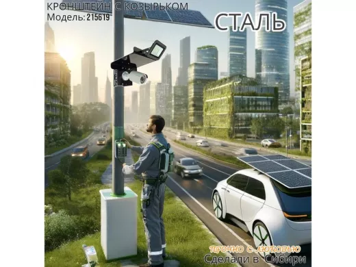 В корзину Купить в 1 клик Кронштейн для камеры и прожектора на столб с козырьком вверх черный "IPAHD-5-215619"