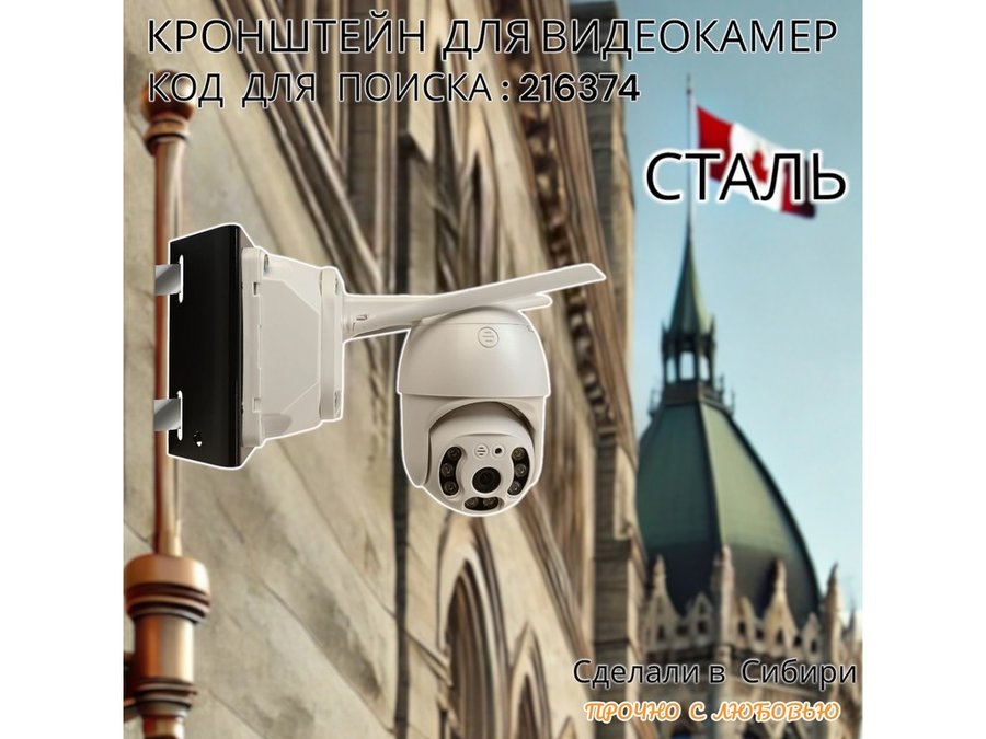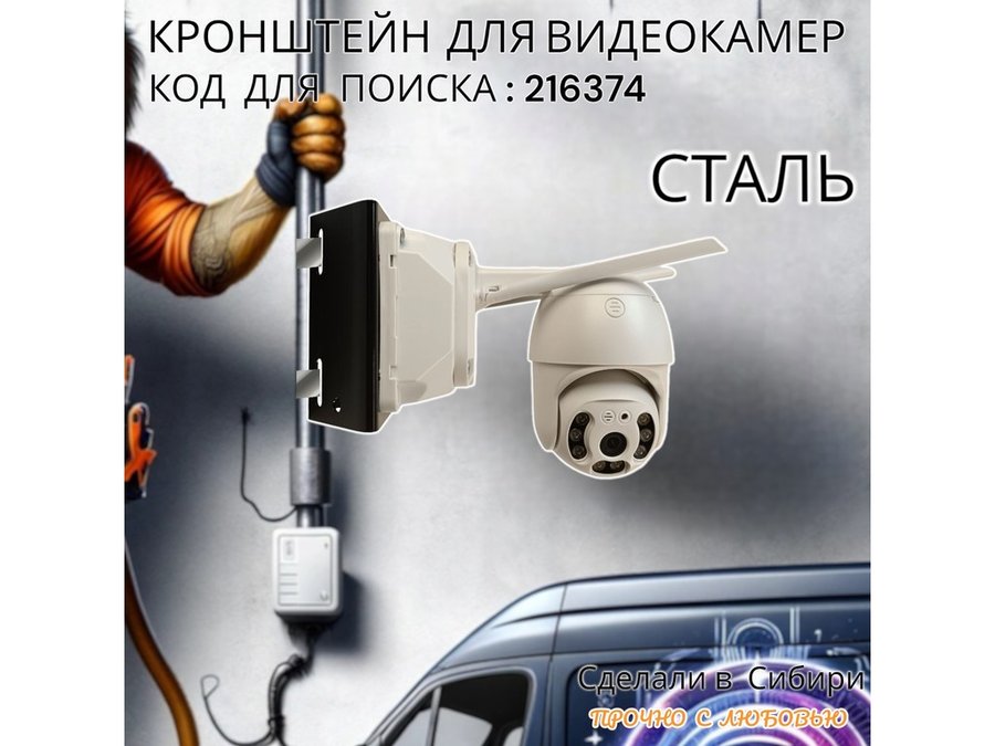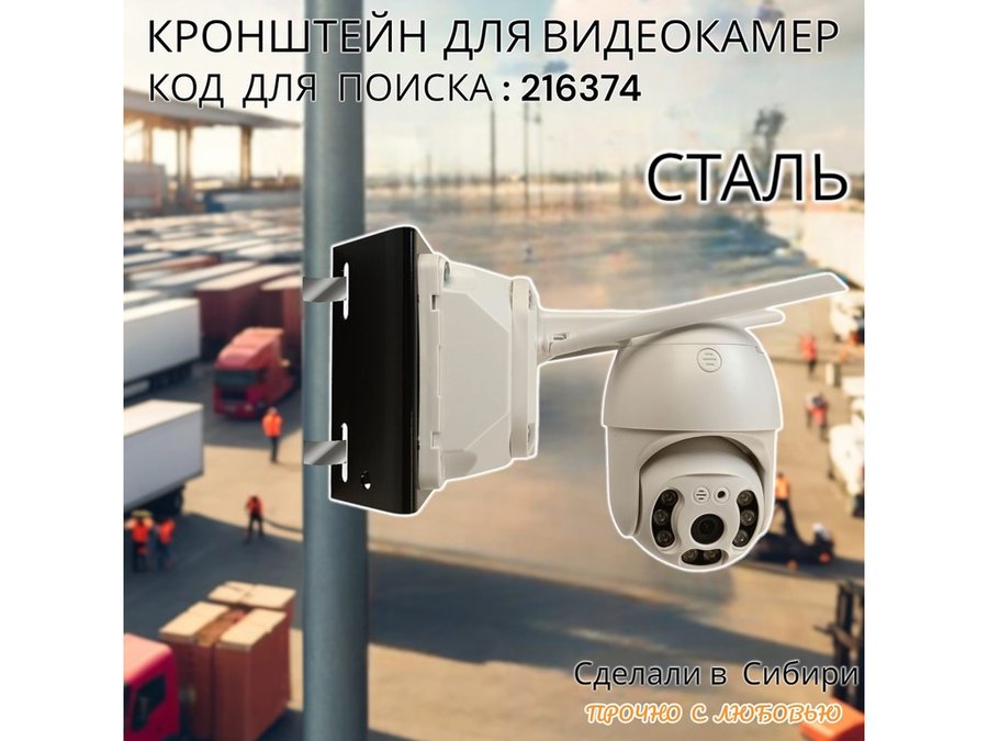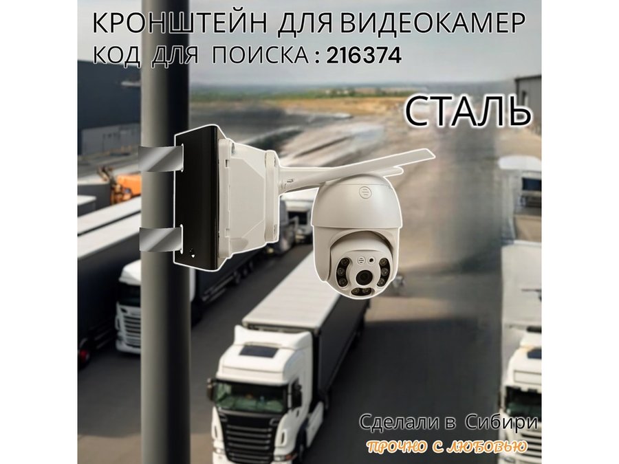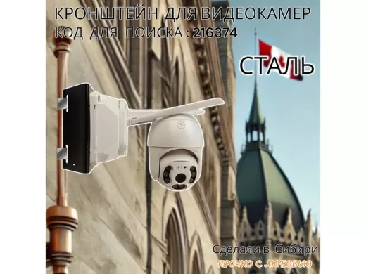 - Универсальный усиленный кронштейн предназначен для крепления поворотных видеокамер на трубе диаметром от 50мм и более.