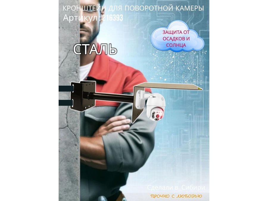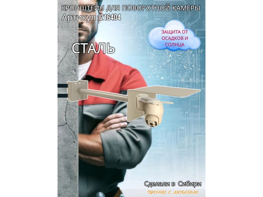 В корзину Купить в 1 клик Кронштейн на столб для поворотной камеры с козырьком и вылетом 100 см "HIWOLL-217394" серый, сталь