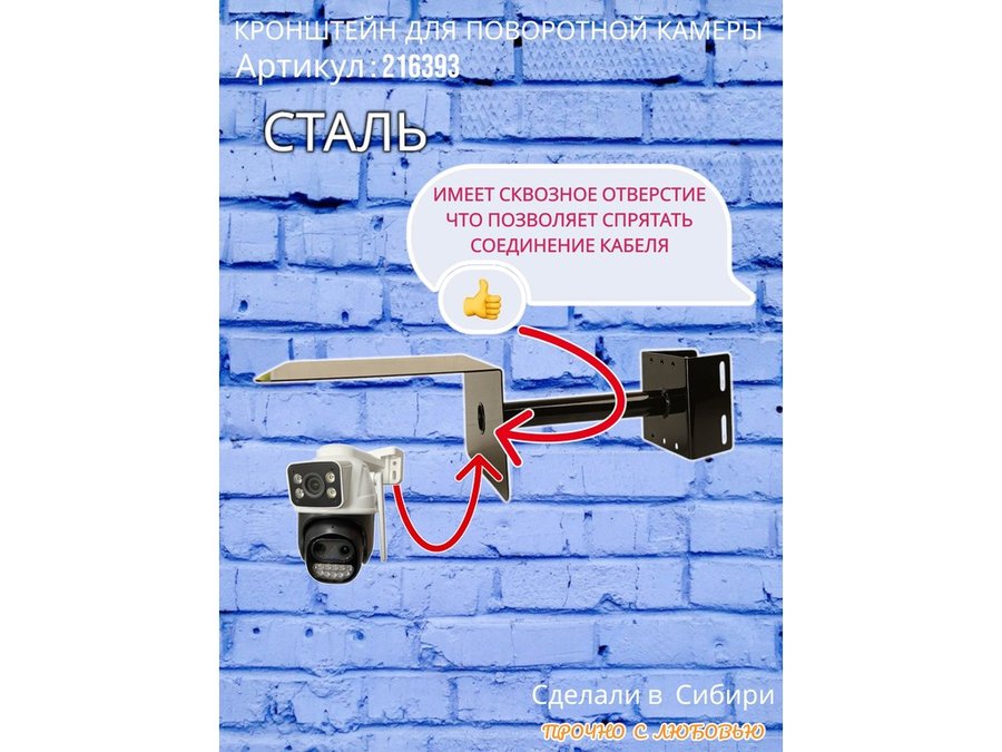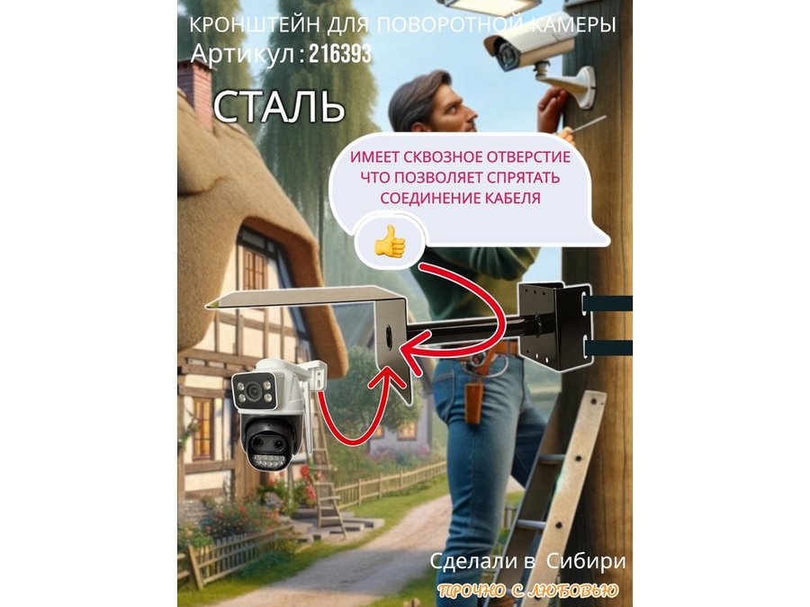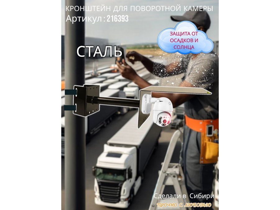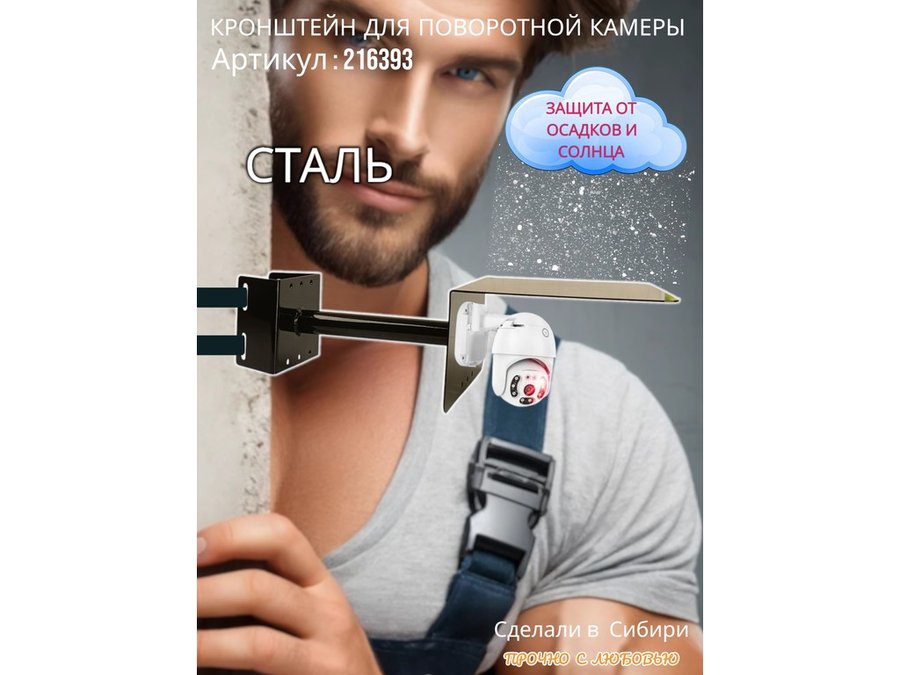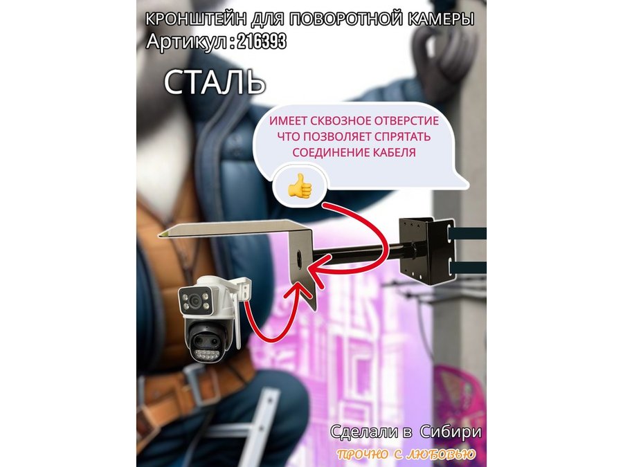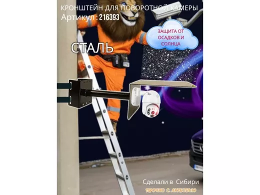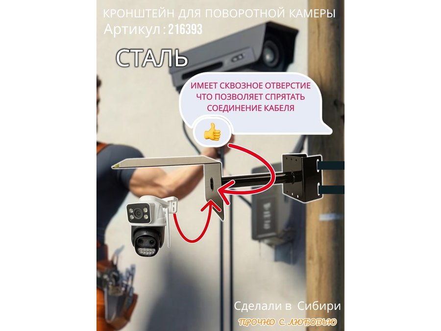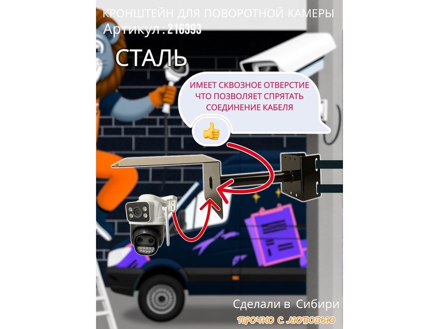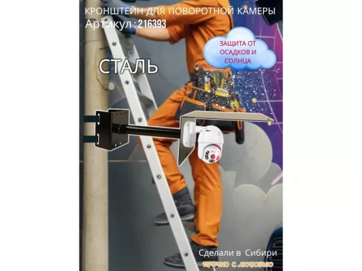 • Стальной кронштейн позволяет вынести камеру от столба на 25 см.