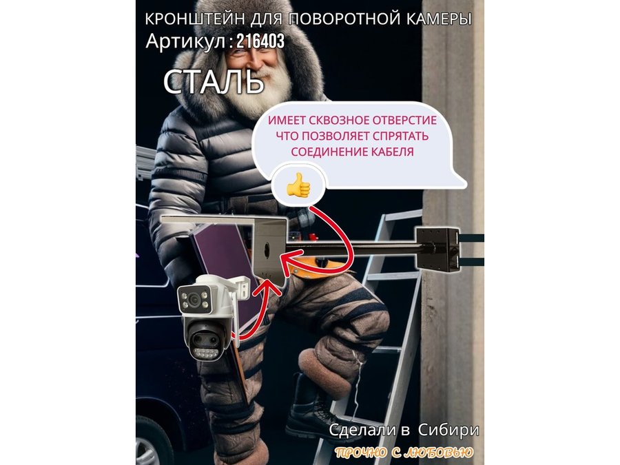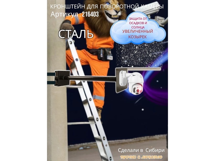 - Стальной кронштейн позволяет вынести камеру от столба на 50 см.