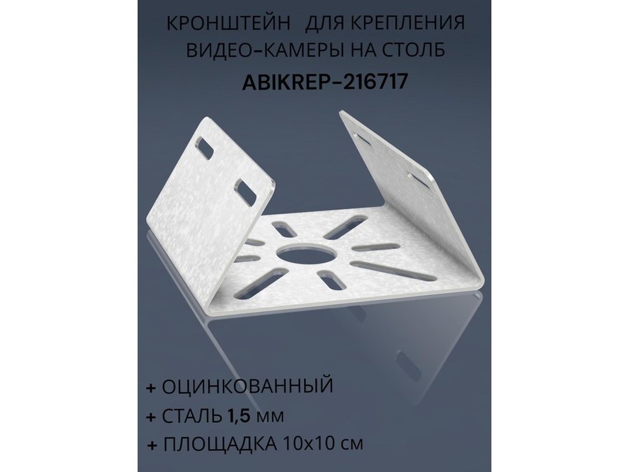 В корзину Купить в 1 клик Кронштейн оцинкованный для камеры на столб "ABIKREP-216717" 100х104мм, сталь, под хомуты, вылет 5см