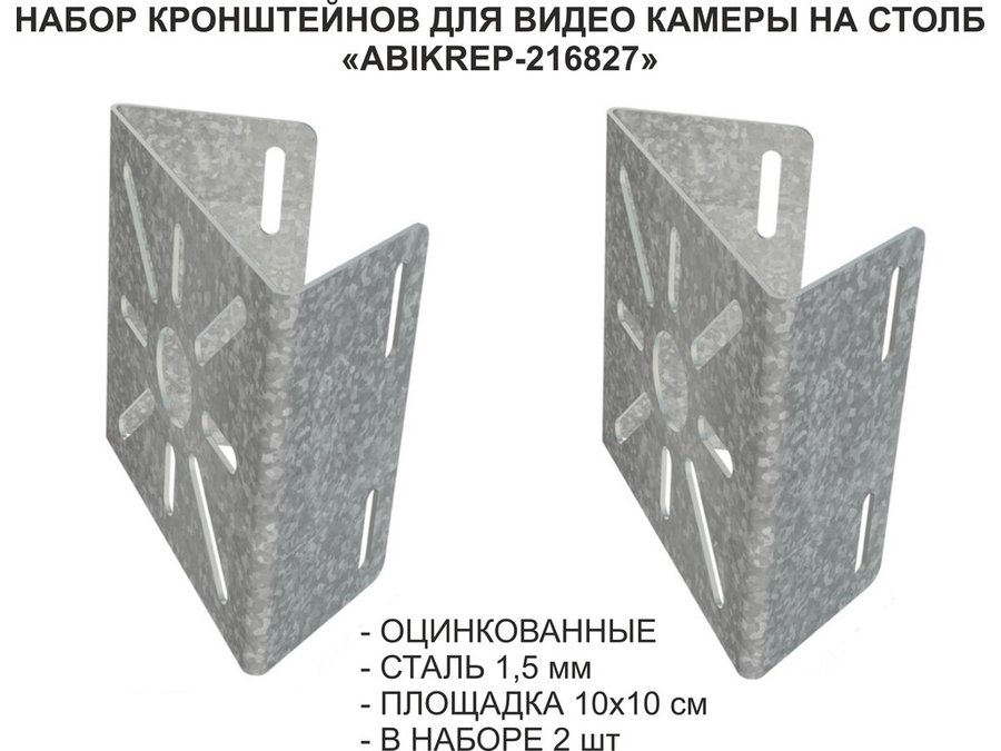 В корзину Купить в 1 клик Набор 2 шт. Кронштейн оцинкованный для камеры на столб "ABIKREP-216827" 100х104мм, сталь,под хомуты