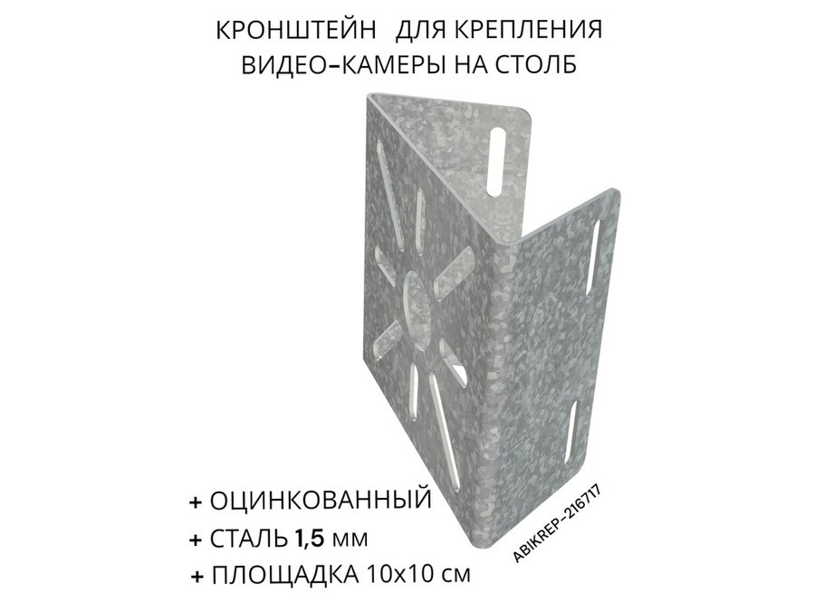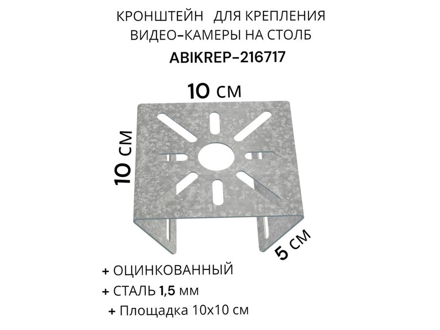 Кронштейн оцинкованный для камеры на столб "ABIKREP-216717" 100х104мм, сталь, под хомуты, вылет 5см