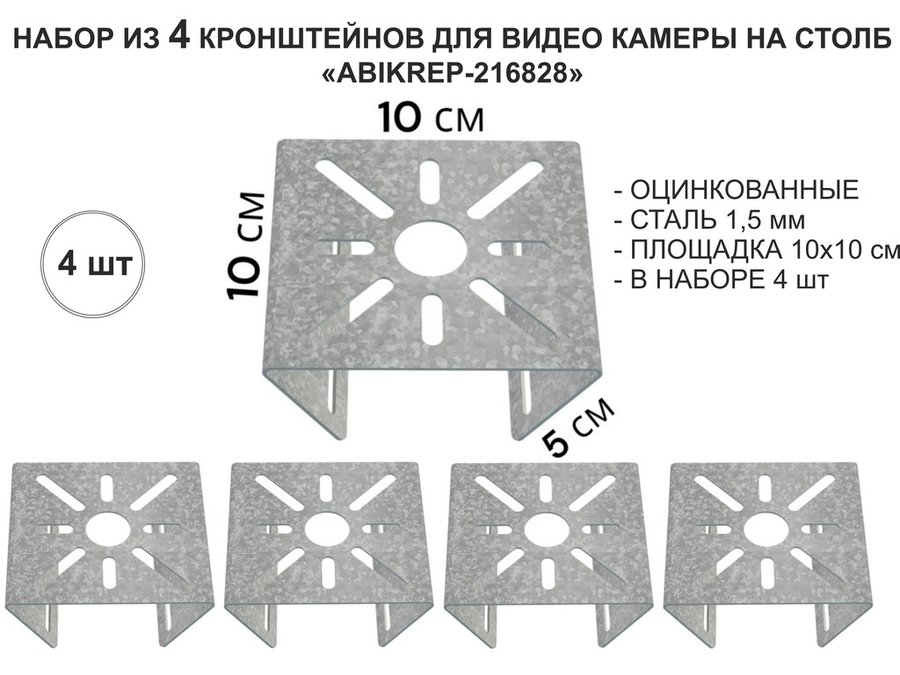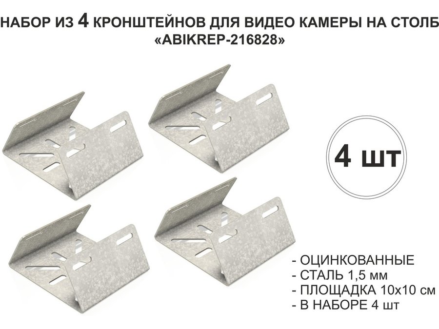 В корзину Купить в 1 клик Набор 4 шт. Кронштейн оцинкованный для камеры на столб "ABIKREP-216828" 100х104мм,сталь, под хомуты