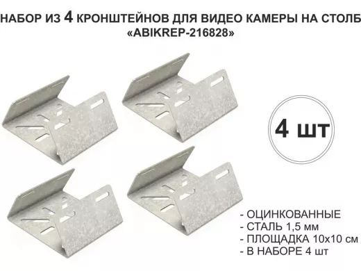 Набор 4 шт. Кронштейн оцинкованный для камеры на столб "ABIKREP-216828" 100х104мм,сталь, под хомуты