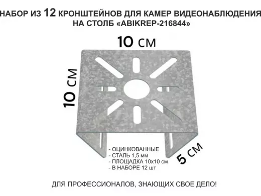 В корзину Купить в 1 клик Набор 12 шт. Кронштейн оцинкованный для камеры на столб "ABIKREP-216844" 100х104мм, сталь,под хомуты