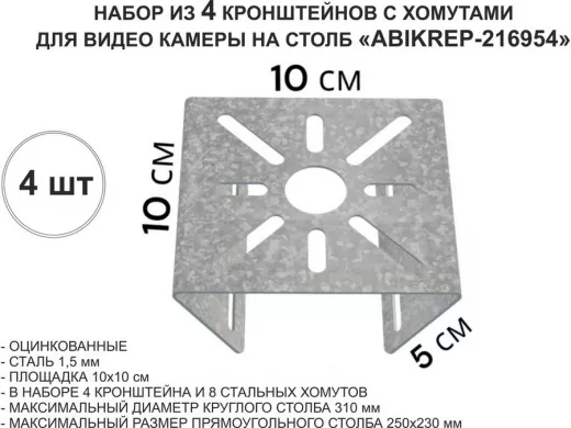 Набор 4шт. Кронштейн оцинкованный для камеры наблюдения с хомутами на столб "ABIKREP-216954"