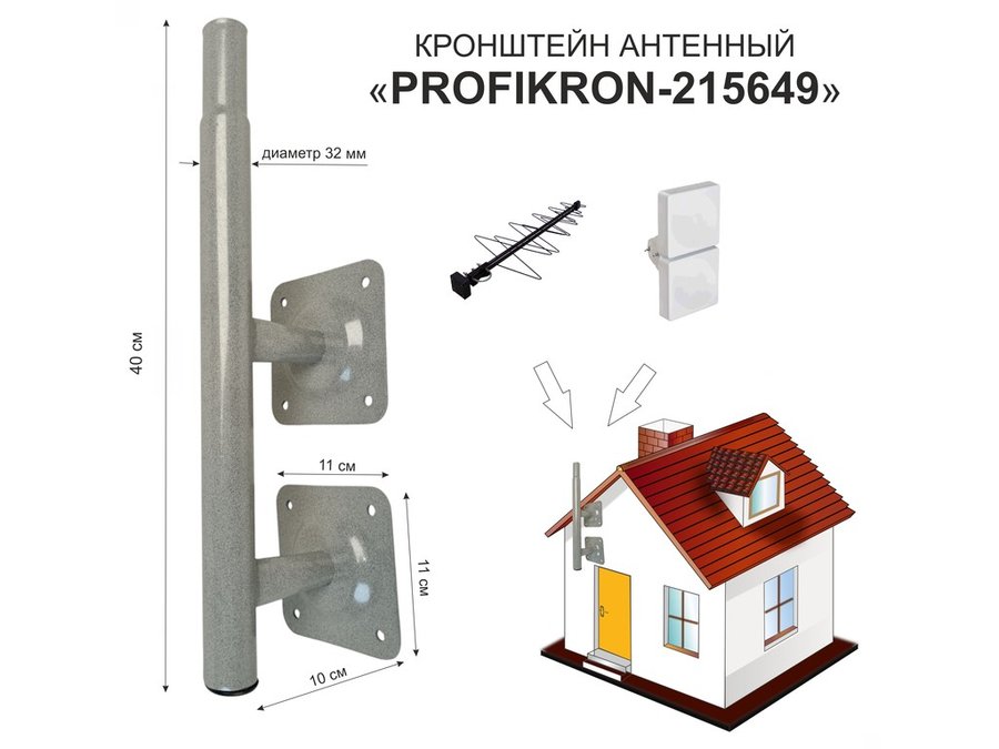 В корзину Купить в 1 клик Кронштейн антенный, вылет 0,1м, обжатая труба "PROFIKRON-215649" серый, вверх 0,4м, диаметр 32мм